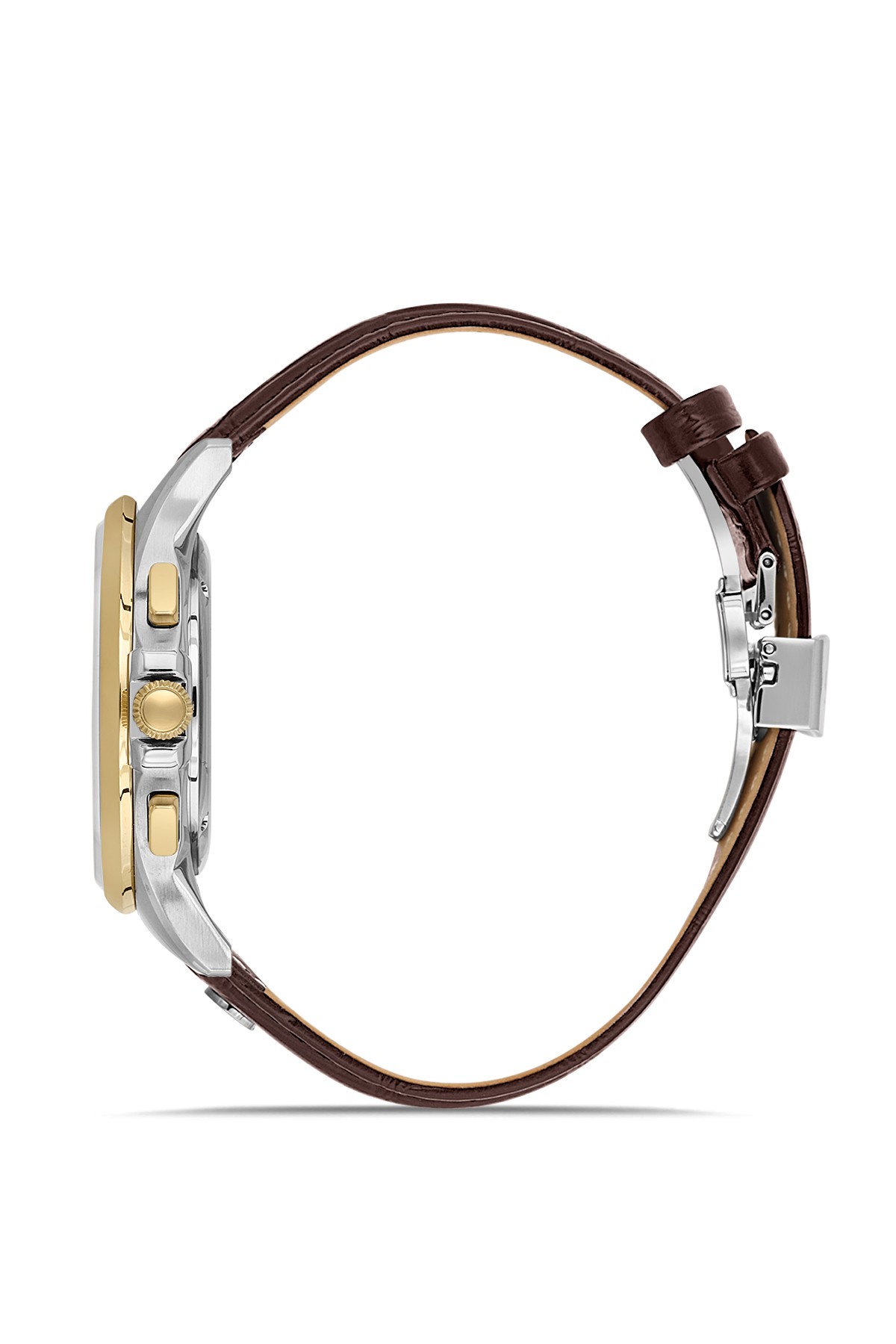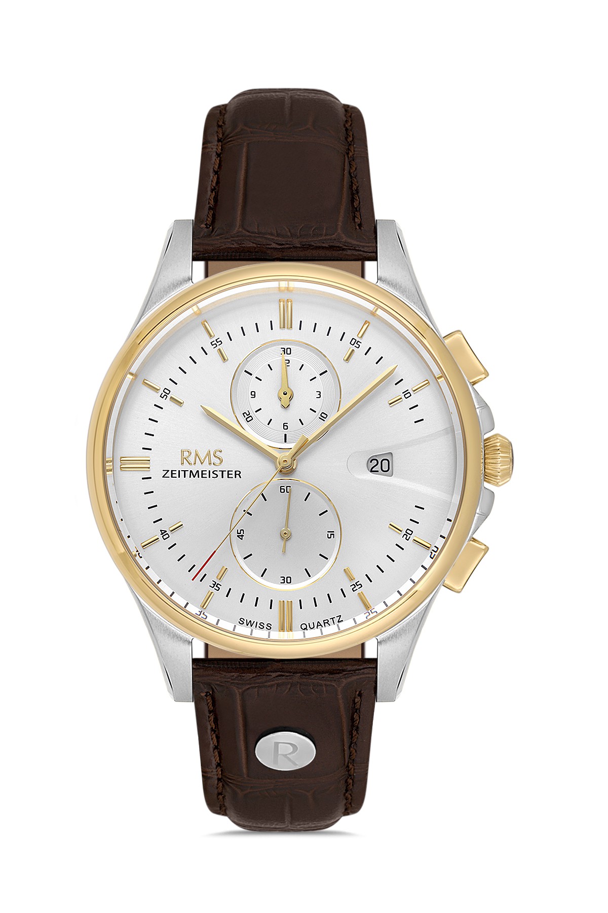 Erkek - Kronometre - Sari Beyaz - Gümüş - Doğal Deri̇ Kordon - Kahverengi̇ - 5 Atm - Sertleşti̇ri̇lmi̇ş Mi̇neral Cam - Grand Romanson - 44