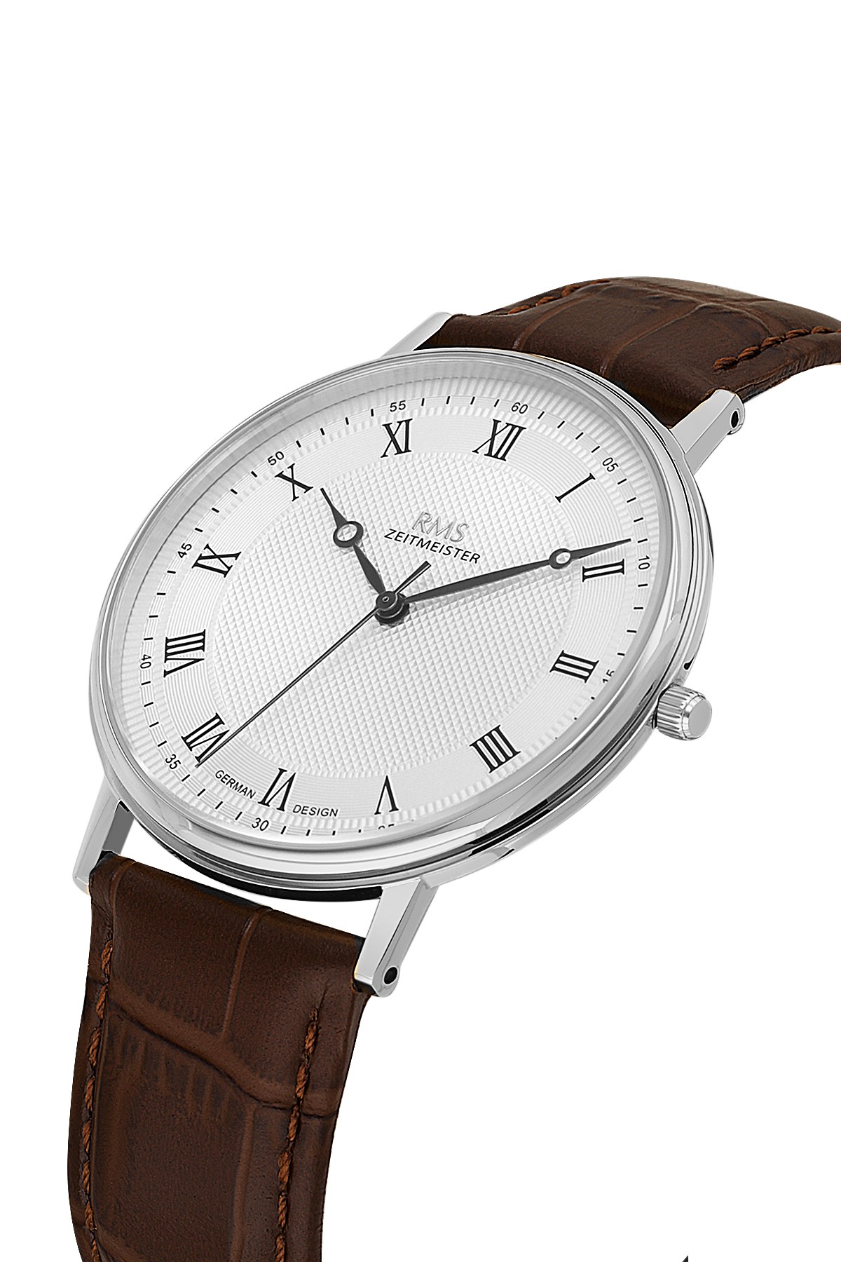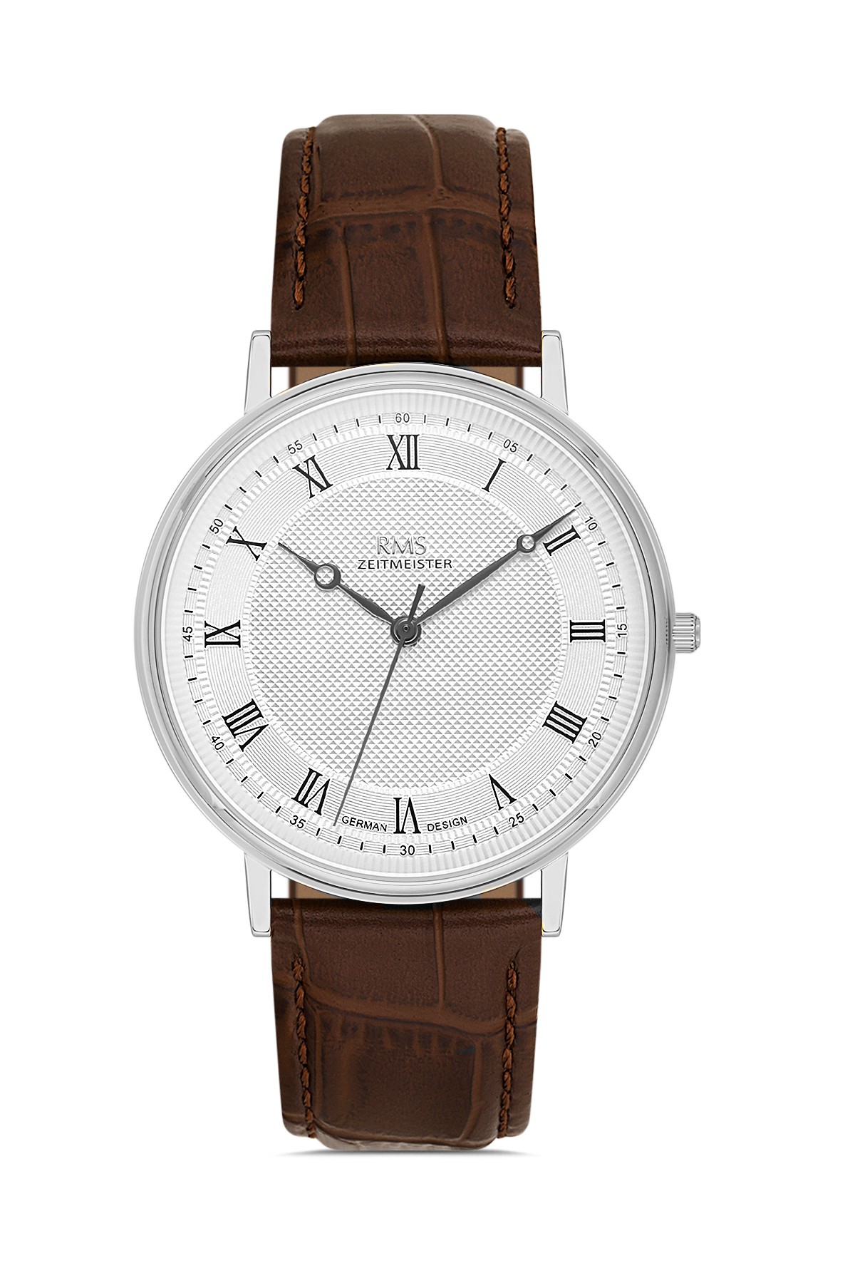 Erkek - Düz - Gümüş - Gümüş - Doğal Deri̇ Kordon - Kahverengi̇ - 5 Atm - Safi̇r Cam - Grand Romanson - 41