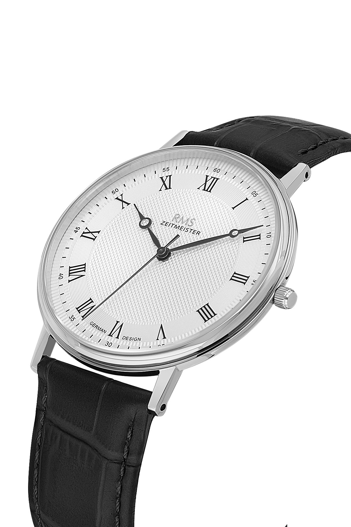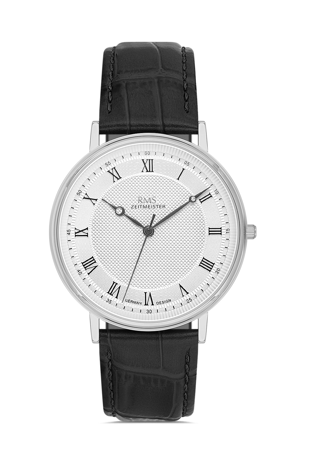 Erkek - Düz - Gümüş - Gümüş - Doğal Deri̇ Kordon - Si̇yah - 5 Atm - Safi̇r Cam - Grand Romanson - 41