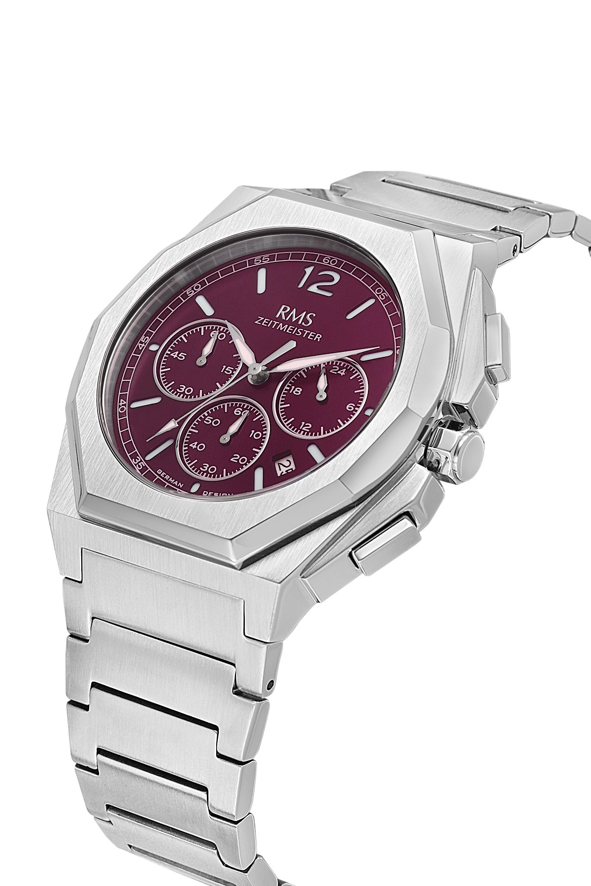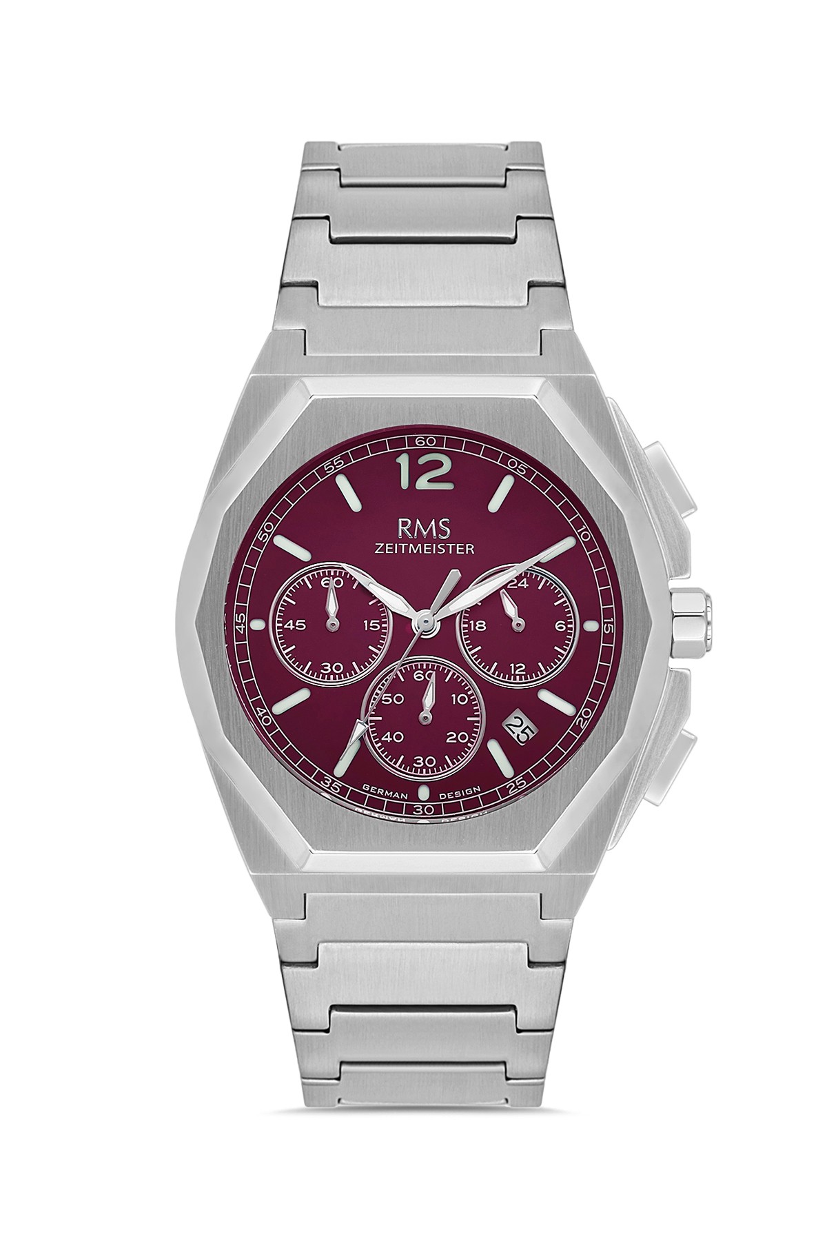Erkek - Kronometre - Gümüş - Kirmizi - Paslanmaz Masi̇f Çeli̇k - 5 Atm - Sertleşti̇ri̇lmi̇ş Mi̇neral Cam - Grand Romanson - 41