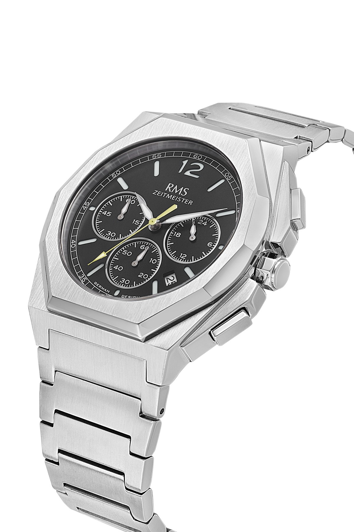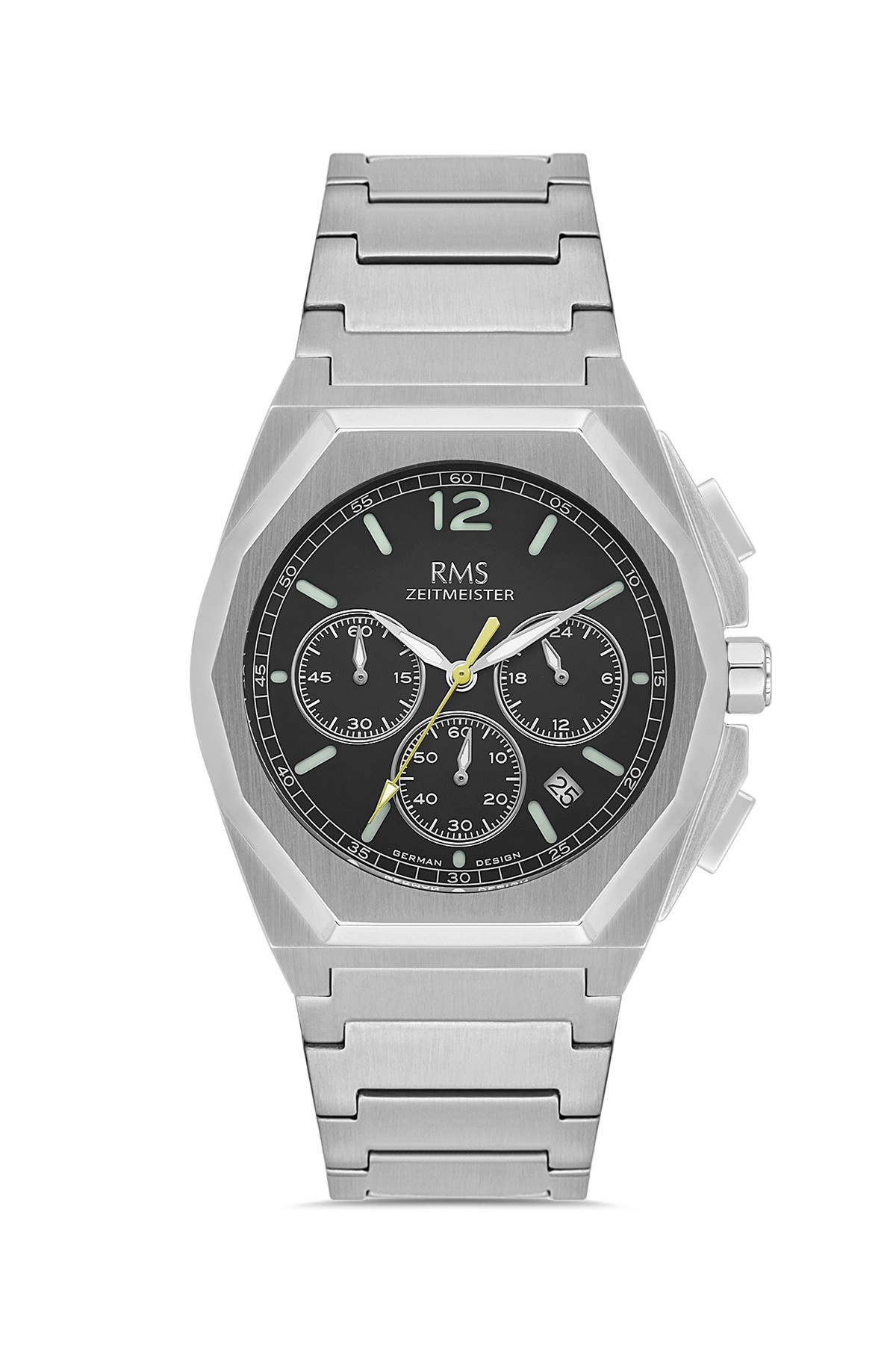 Erkek - Kronometre - Gümüş - Si̇yah - Paslanmaz Masi̇f Çeli̇k - 5 Atm - Sertleşti̇ri̇lmi̇ş Mi̇neral Cam - Grand Romanson - 41