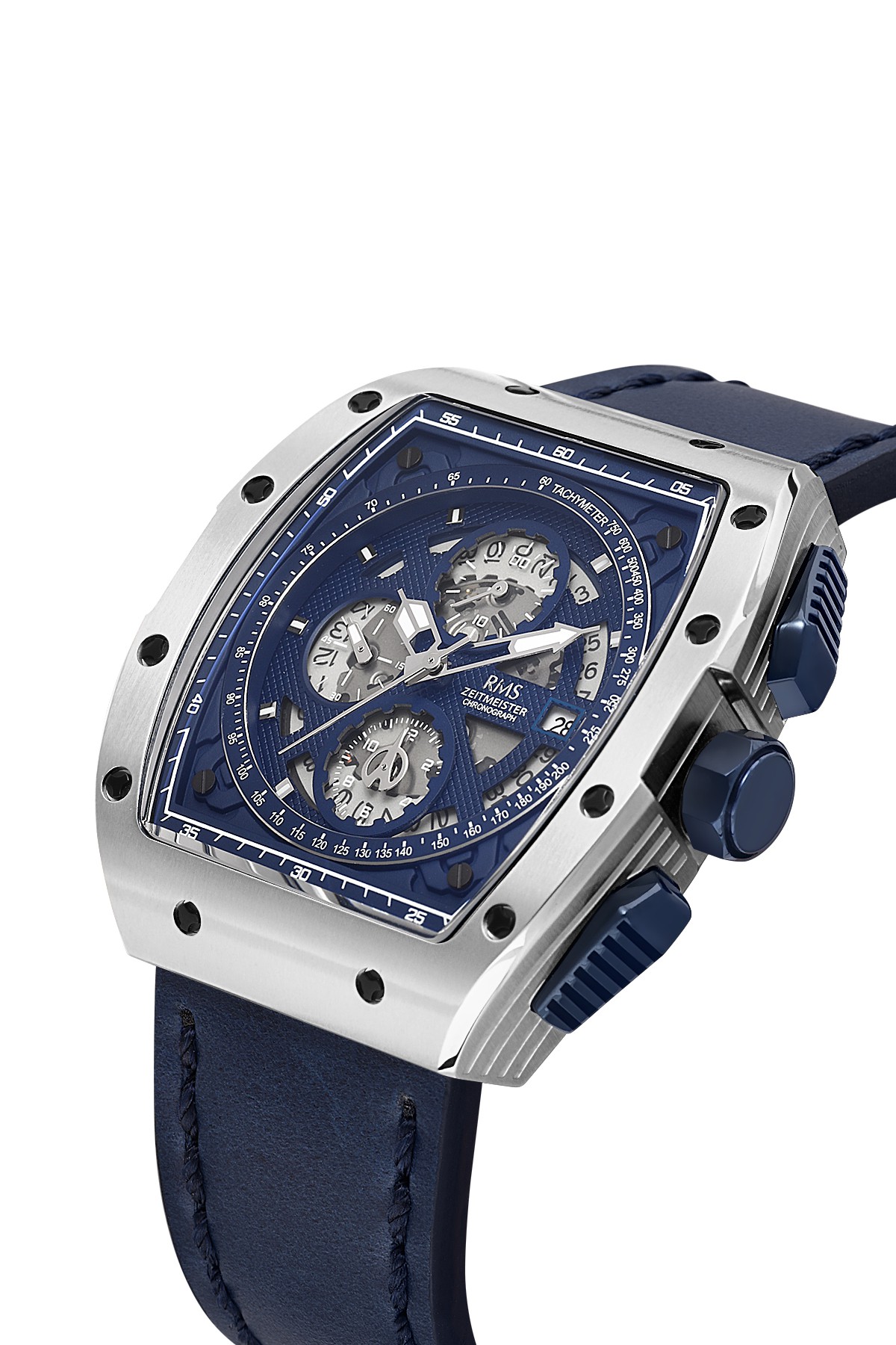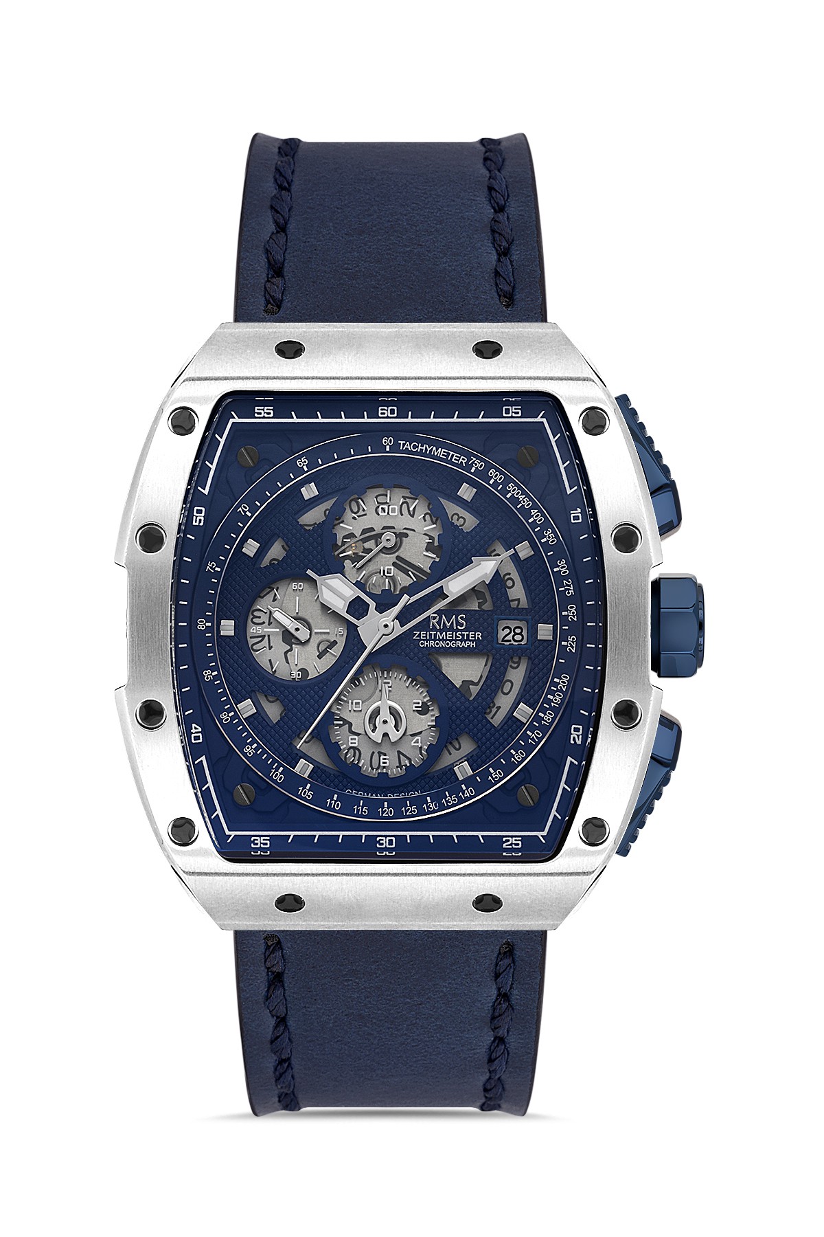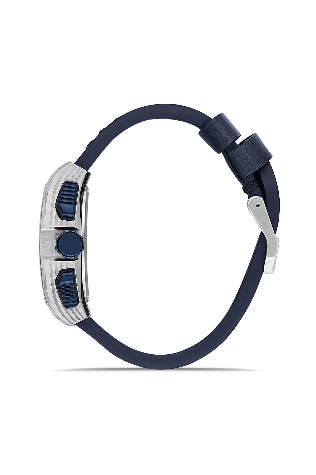 Erkek - Kronometre - Gümüş - Mavi̇ - Doğal Deri̇ Kordon - Mavi̇ - 5 Atm - Sertleşti̇ri̇lmi̇ş Mi̇neral Cam - Grand Romanson - 44*49