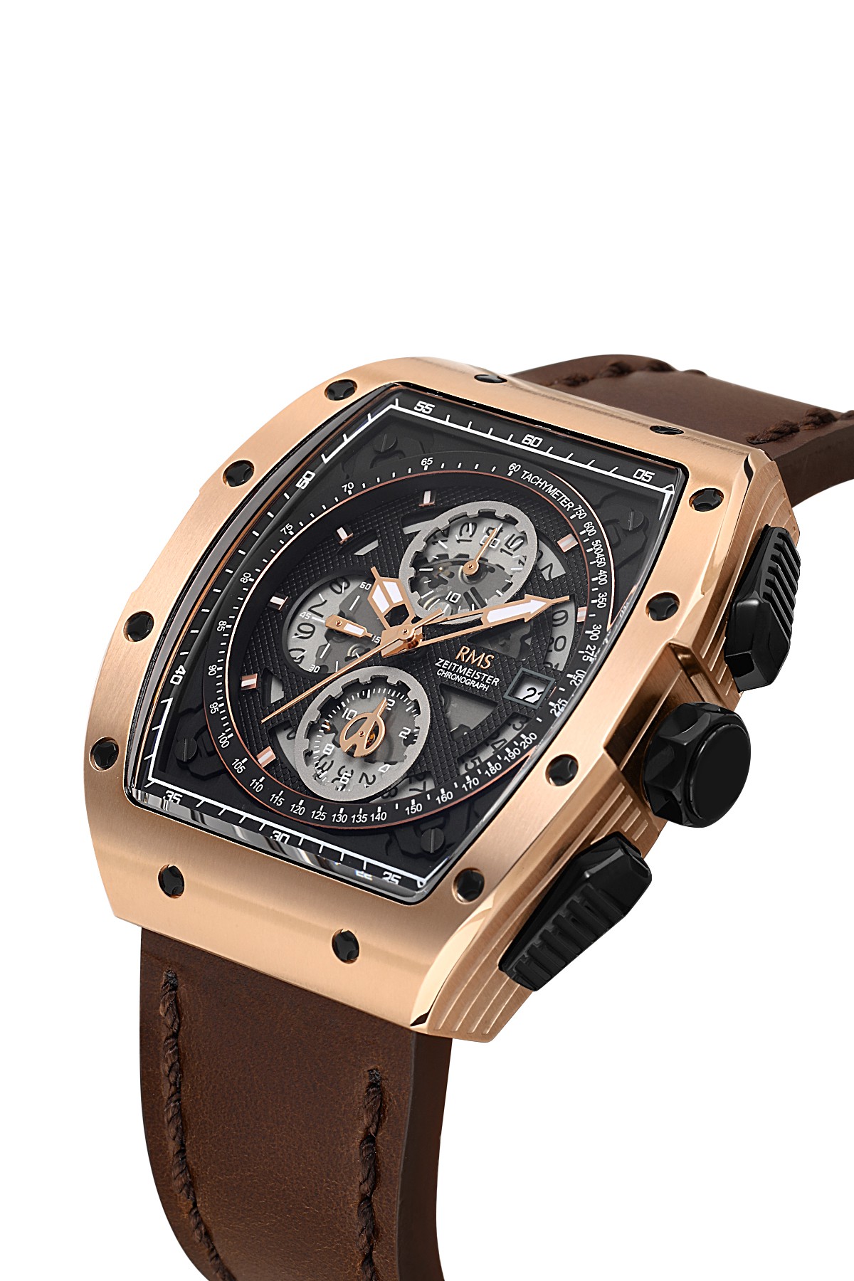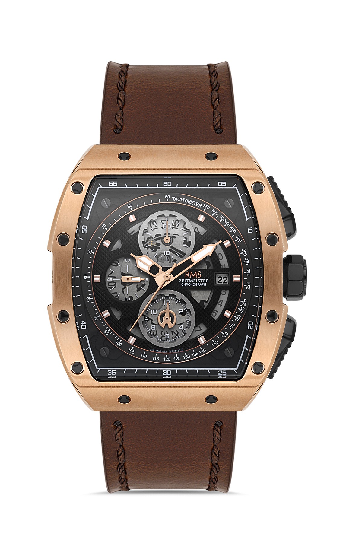 Erkek - Kronometre - Rose - Si̇yah - Doğal Deri̇ Kordon - Kahverengi̇ - 5 Atm - Sertleşti̇ri̇lmi̇ş Mi̇neral Cam - Grand Romanson - 44*49