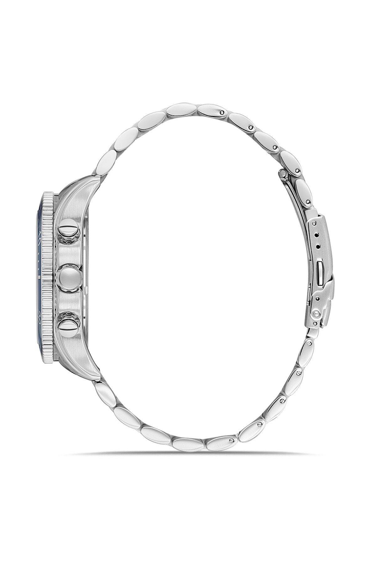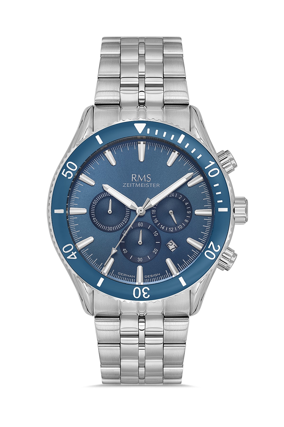 Erkek - Kronometre - Gümüş - Mavi̇ - Paslanmaz Masi̇f Çeli̇k - 5 Atm - Sertleşti̇ri̇lmi̇ş Mi̇neral Cam - Grand Romanson - 47