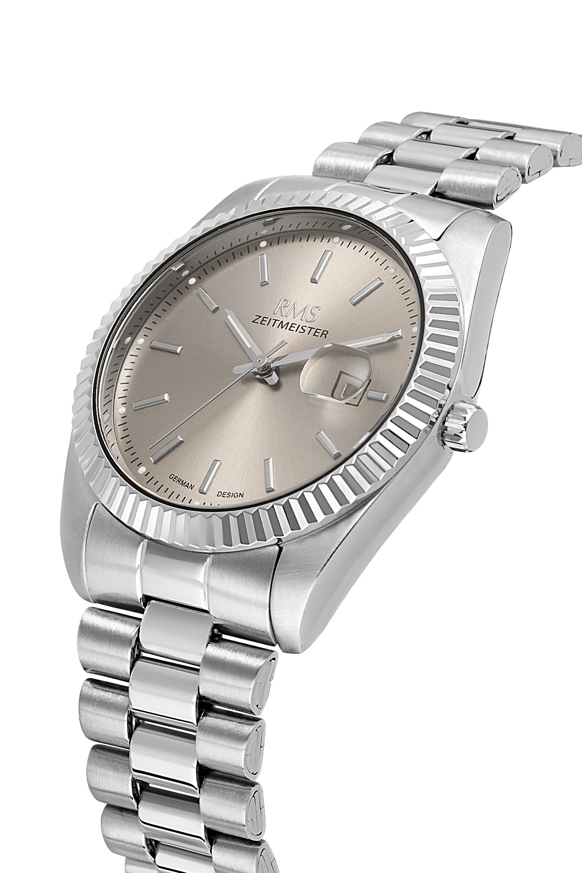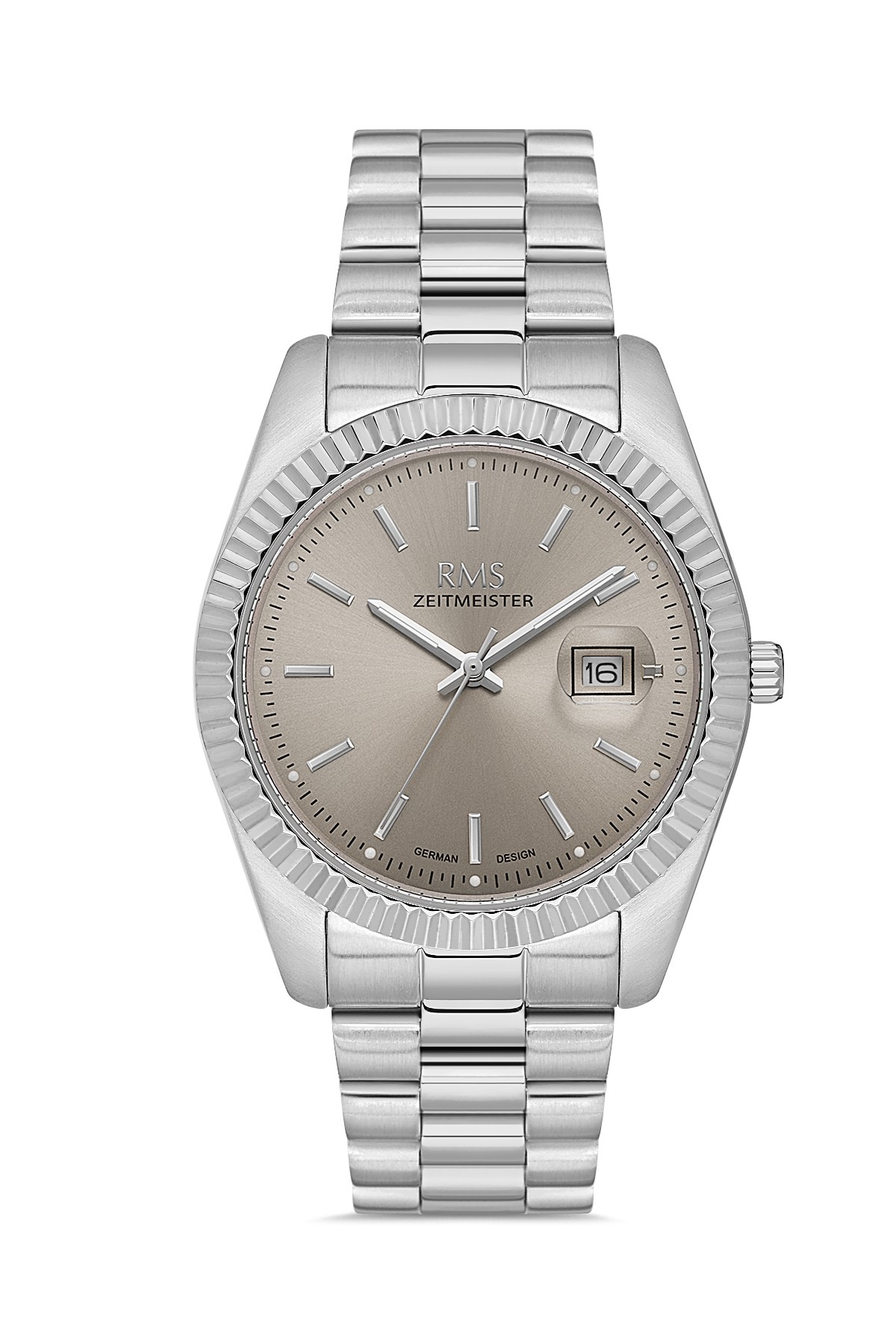 Erkek - Takvi̇mli̇ - Gümüş - Gri̇ - Paslanmaz Masi̇f Çeli̇k - 5 Atm - Sertleşti̇ri̇lmi̇ş Mi̇neral Cam - Grand Romanson - 40