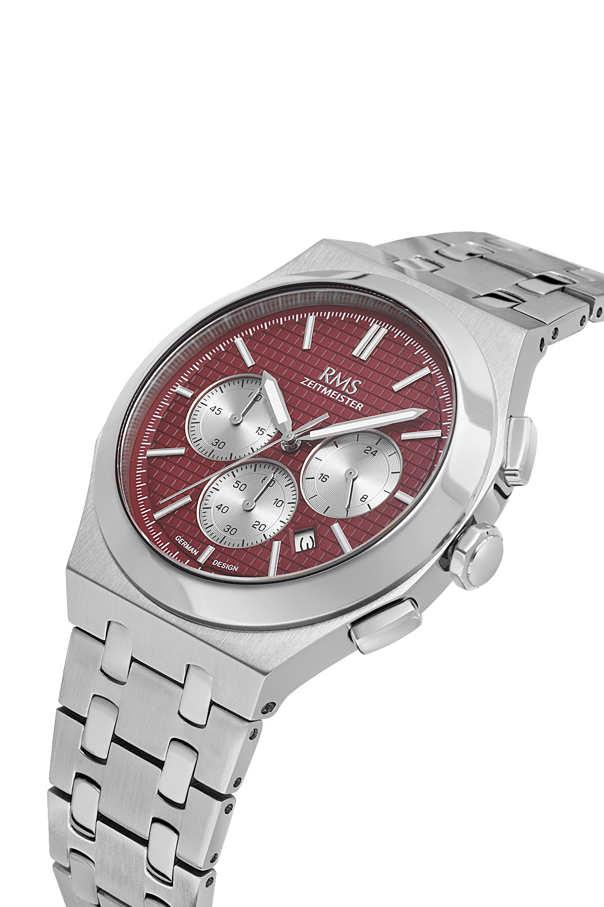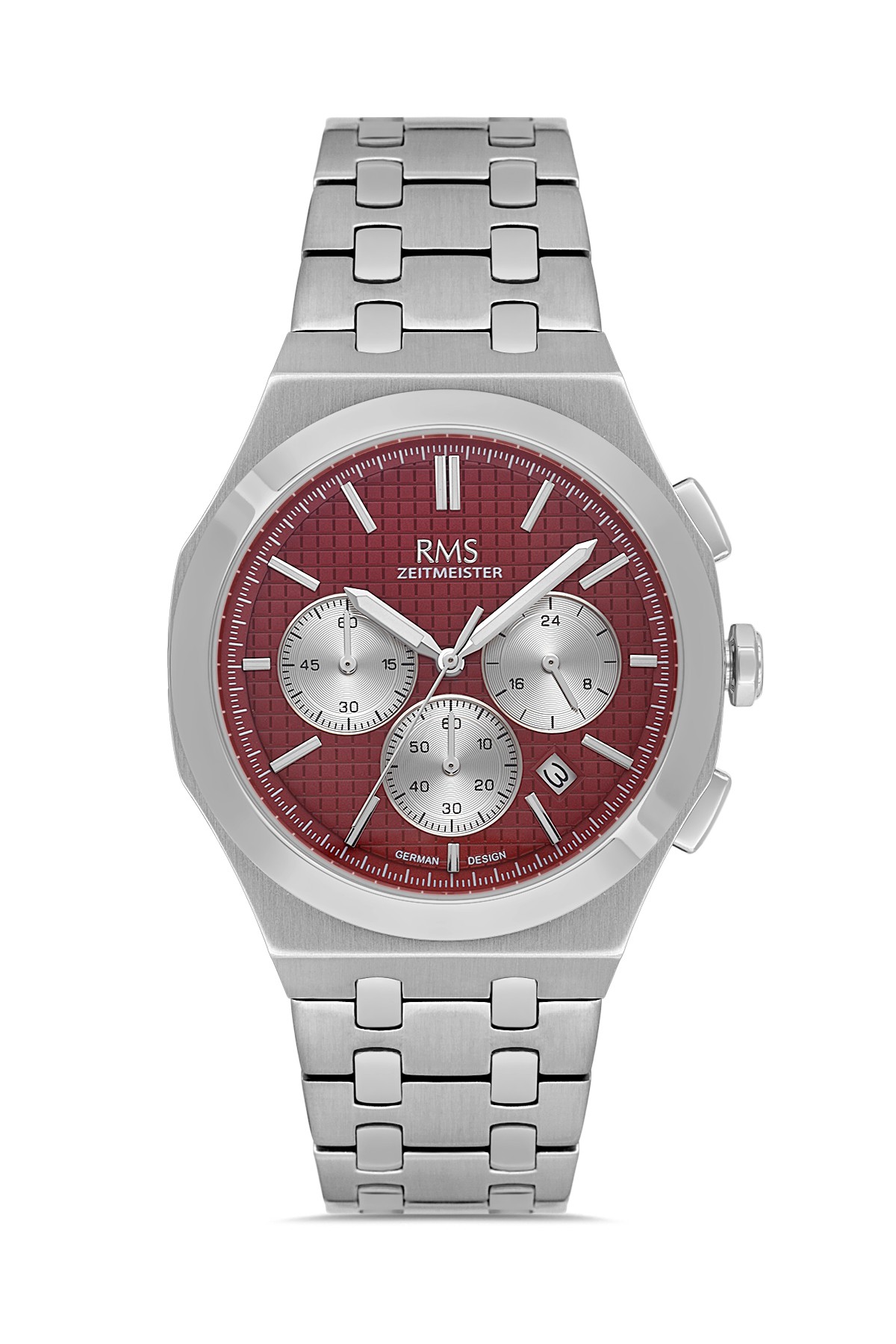 Erkek - Kronometre - Gümüş - Bordo - Paslanmaz Masi̇f Çeli̇k - 5 Atm - Sertleşti̇ri̇lmi̇ş Mi̇neral Cam - Grand Romanson - 42