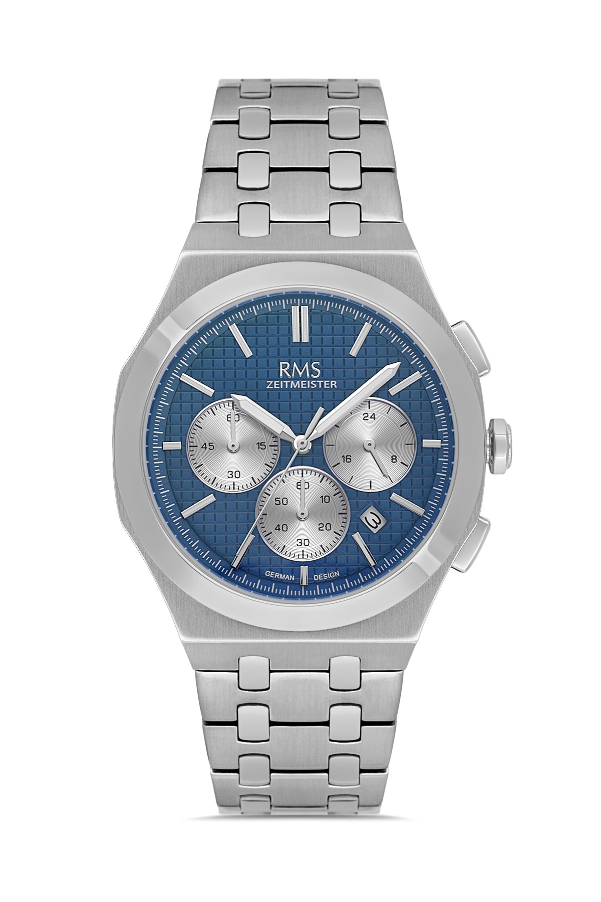 Erkek - Kronometre - Gümüş - Mavi̇ - Paslanmaz Masi̇f Çeli̇k - 5 Atm - Sertleşti̇ri̇lmi̇ş Mi̇neral Cam - Grand Romanson - 42