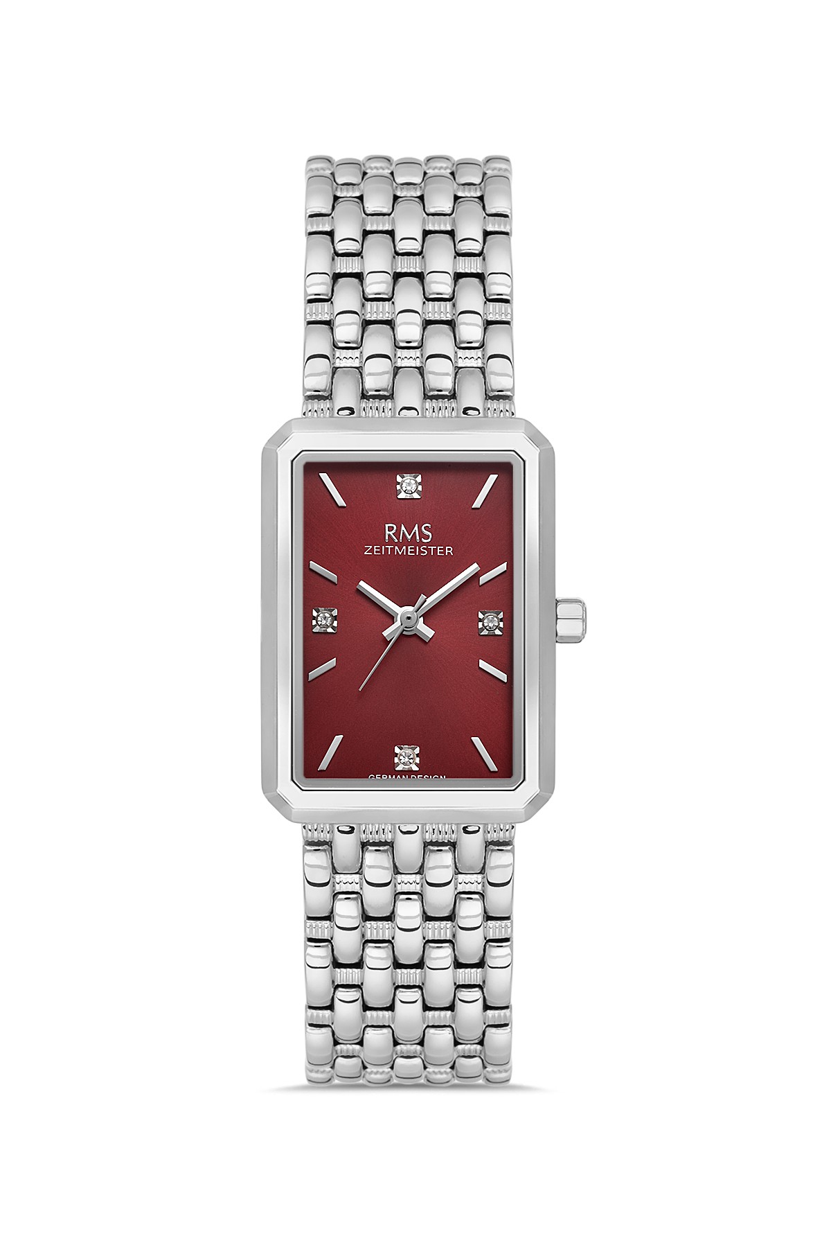 Kadın - Taşli - Gümüş - Bordo - Paslanmaz Masi̇f Çeli̇k - 5 Atm - Sertleşti̇ri̇lmi̇ş Mi̇neral Cam - Grand Romanson - 22*30