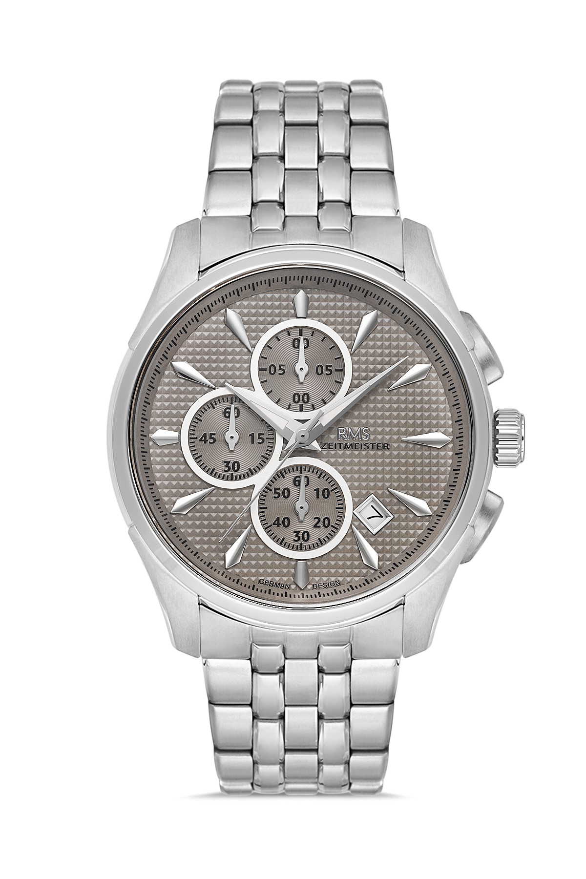 Erkek - Kronometre - Gümüş - Gri̇ - Paslanmaz Masi̇f Çeli̇k - 5 Atm - Sertleşti̇ri̇lmi̇ş Mi̇neral Cam - Grand Romanson - 42