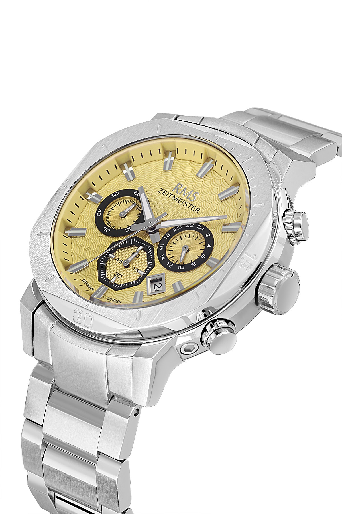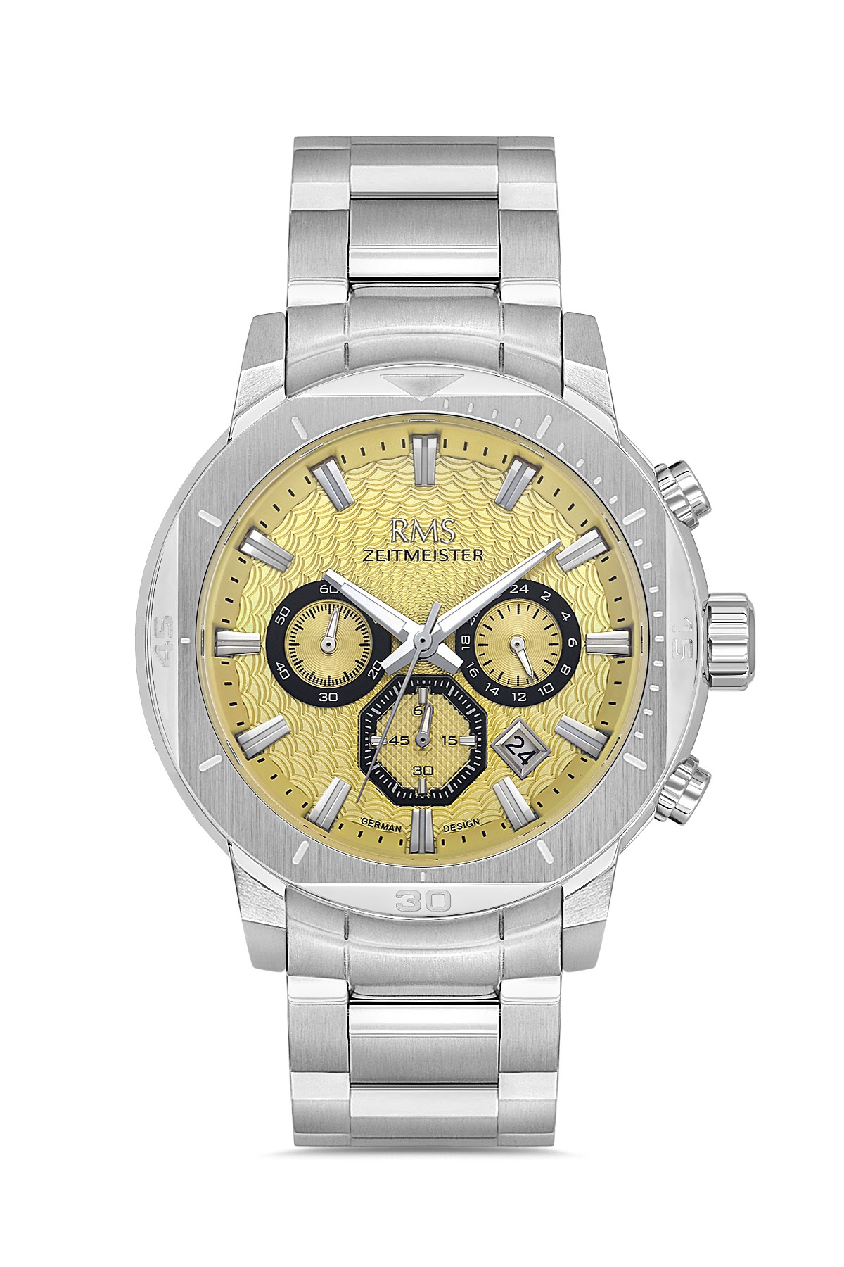 Erkek - Kronometre - Gümüş - Sari - Paslanmaz Masi̇f Çeli̇k - 5 Atm - Sertleşti̇ri̇lmi̇ş Mi̇neral Cam - Grand Romanson - 46