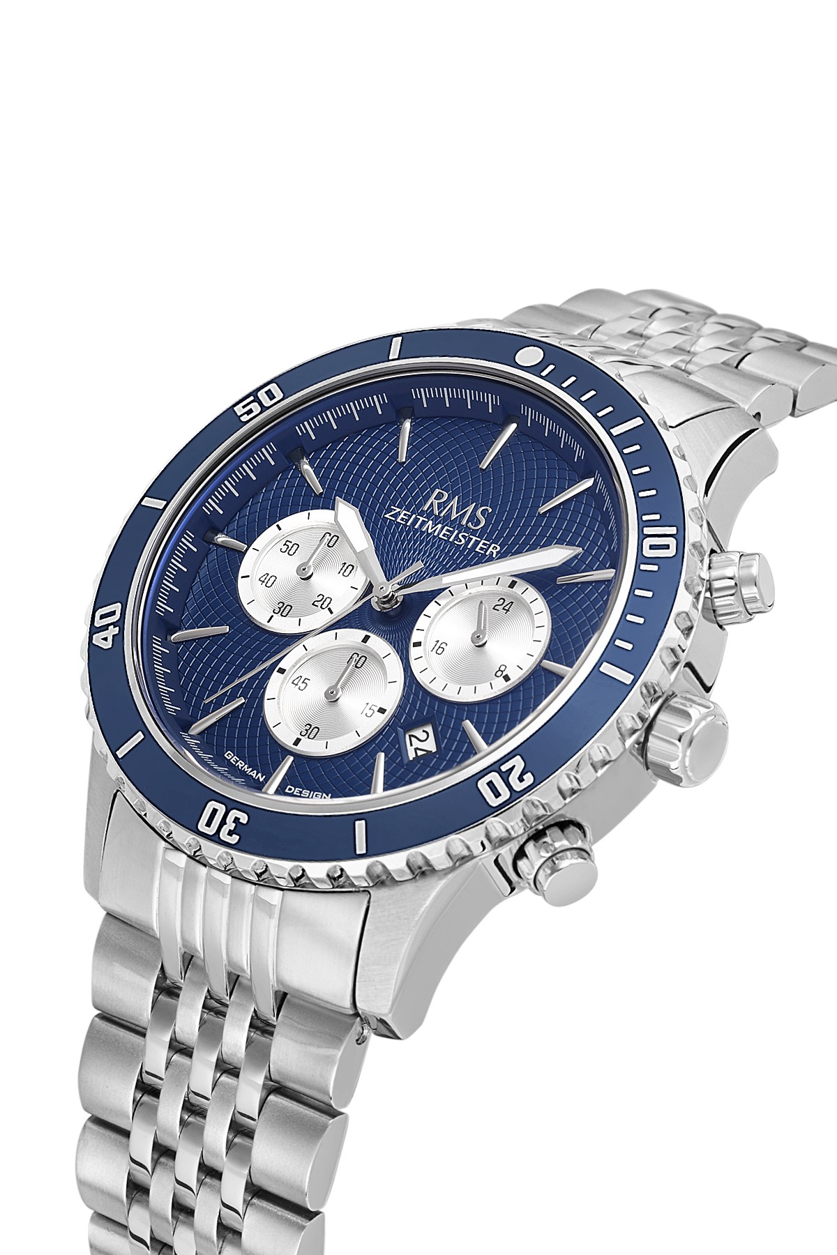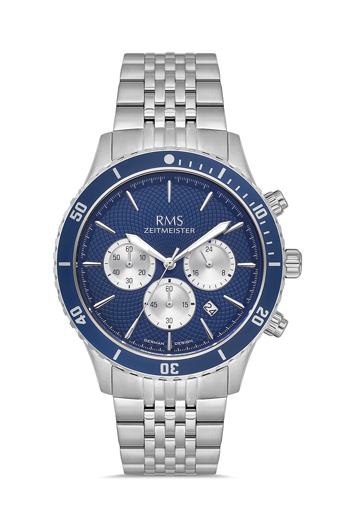 Erkek - Kronometre - Gümüş - Mavi̇ - Paslanmaz Masi̇f Çeli̇k - 5 Atm - Sertleşti̇ri̇lmi̇ş Mi̇neral Cam - Grand Romanson - 44