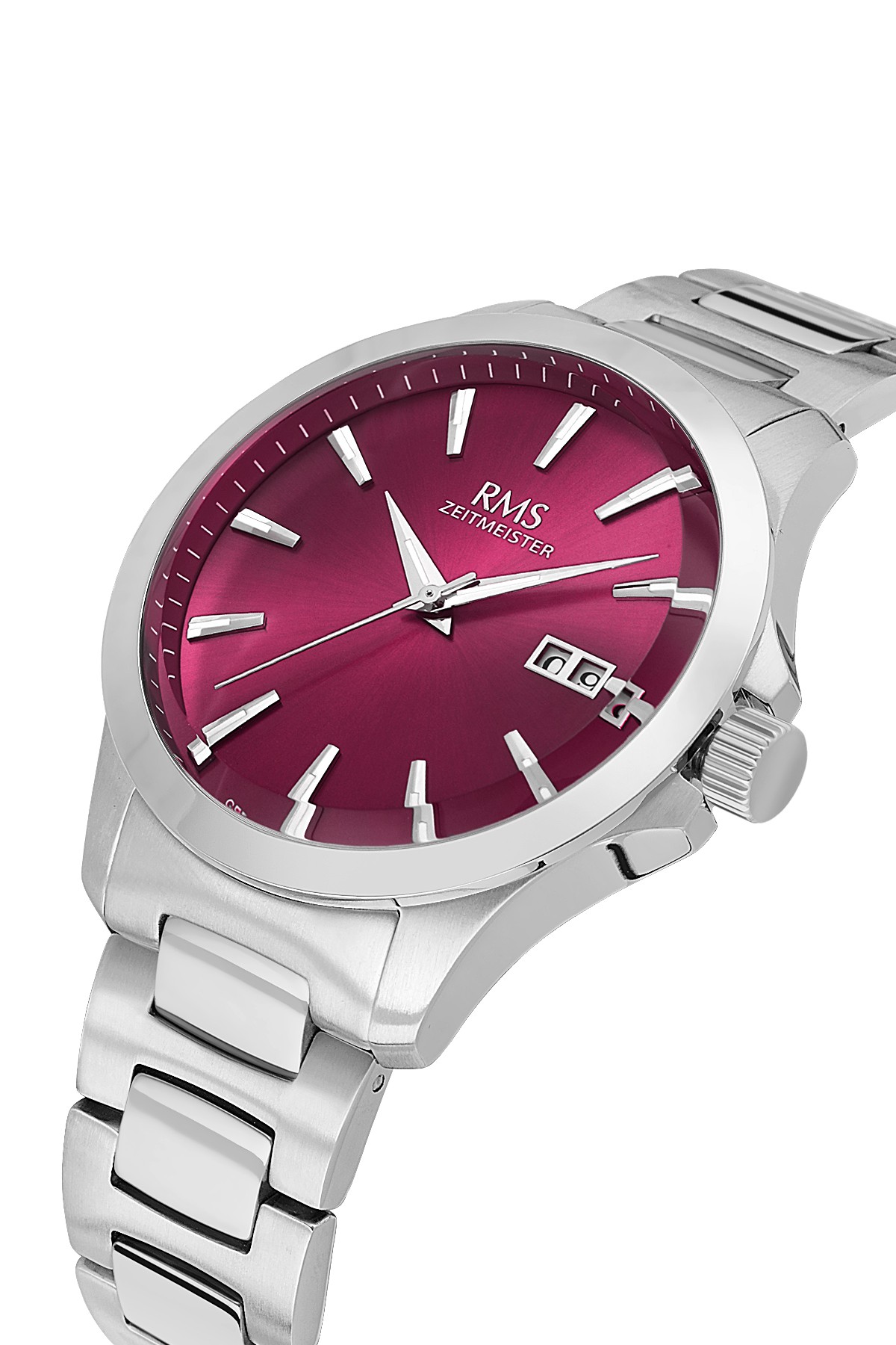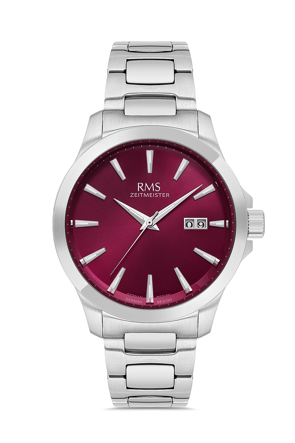 Erkek - Takvi̇mli̇ - Gümüş - Bordo - Paslanmaz Masi̇f Çeli̇k - 5 Atm - Sertleşti̇ri̇lmi̇ş Mi̇neral Cam - Grand Romanson - 41