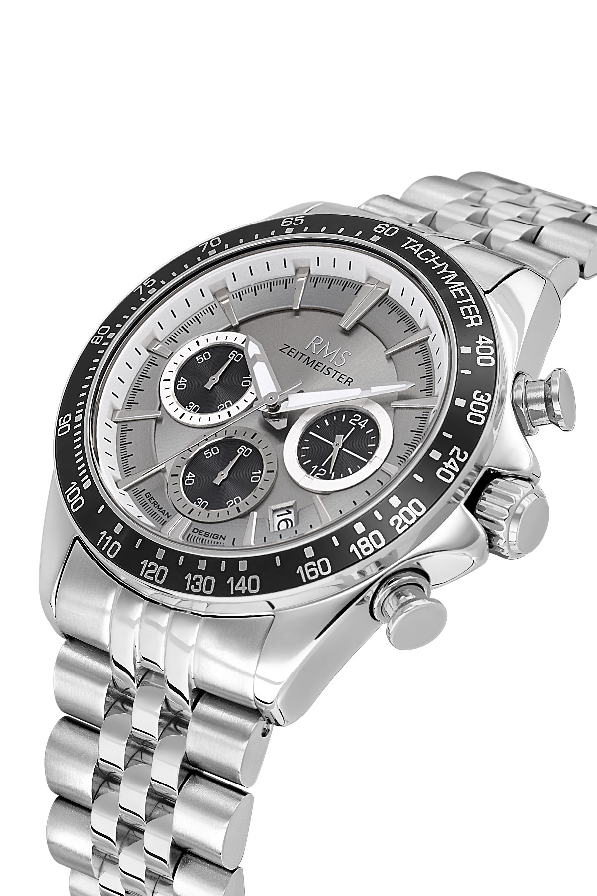 Erkek - Kronometre - Gümüş - Gri̇ - Paslanmaz Masi̇f Çeli̇k - 5 Atm - Sertleşti̇ri̇lmi̇ş Mi̇neral Cam - Grand Romanson - 45