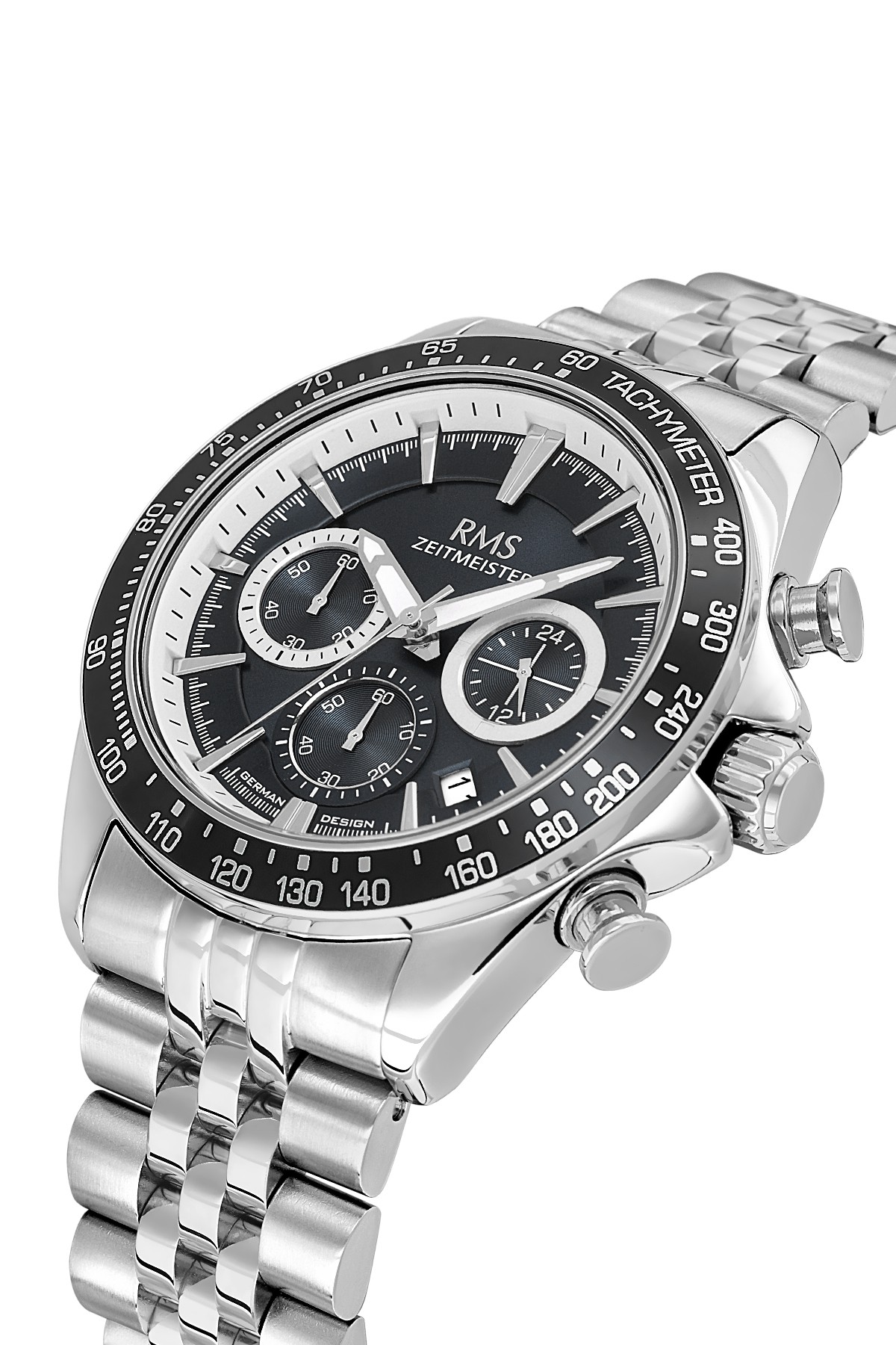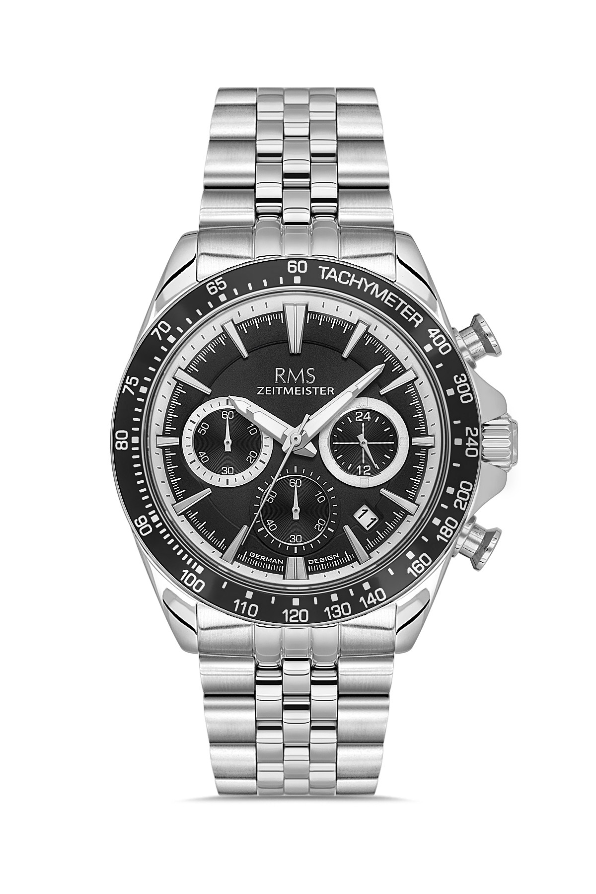 Erkek - Kronometre - Gümüş - Si̇yah - Paslanmaz Masi̇f Çeli̇k - 5 Atm - Sertleşti̇ri̇lmi̇ş Mi̇neral Cam - Grand Romanson - 45