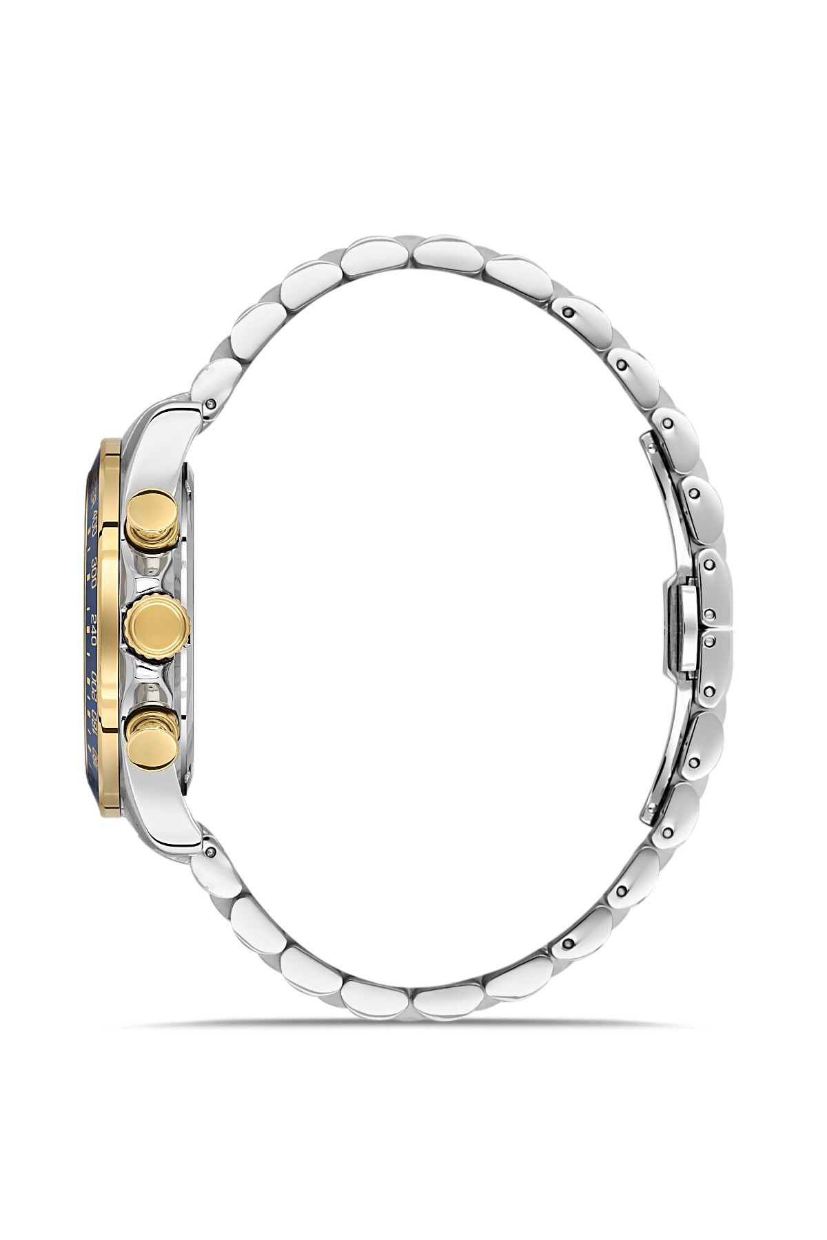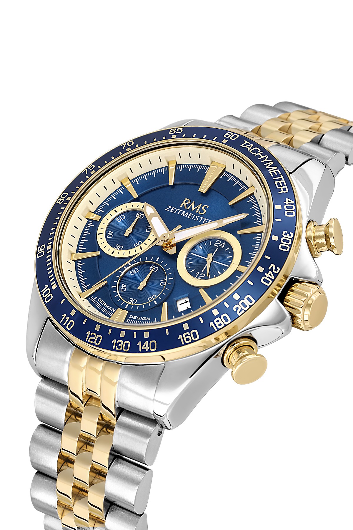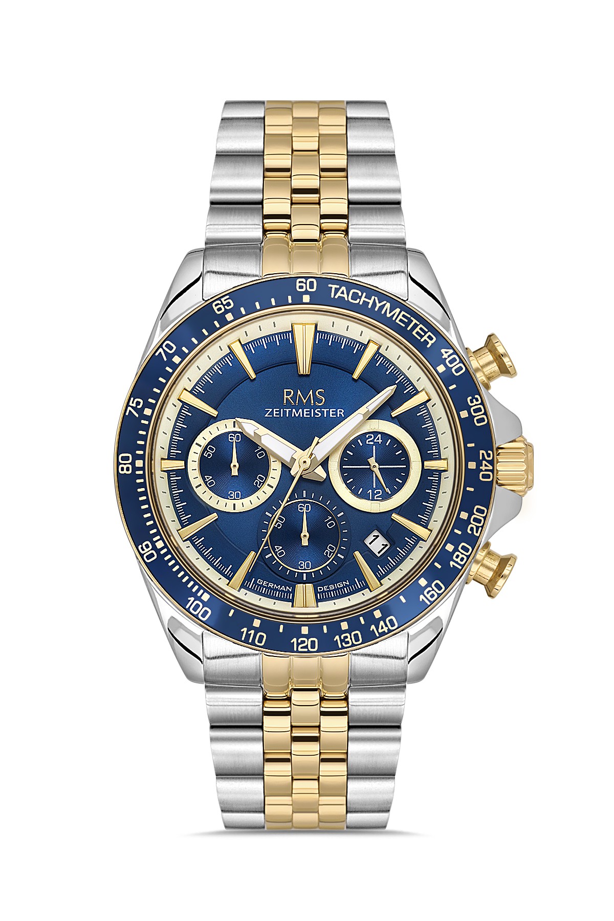 Erkek - Kronometre - Sari Beyaz - Mavi̇ - Paslanmaz Masi̇f Çeli̇k - 5 Atm - Sertleşti̇ri̇lmi̇ş Mi̇neral Cam - Grand Romanson - 45