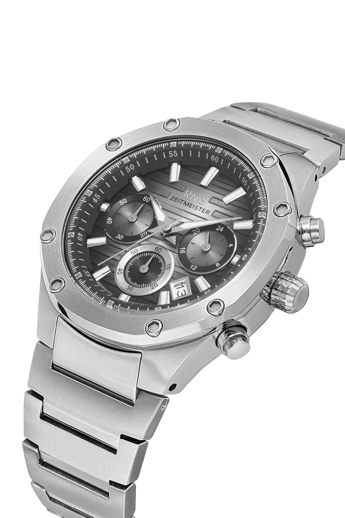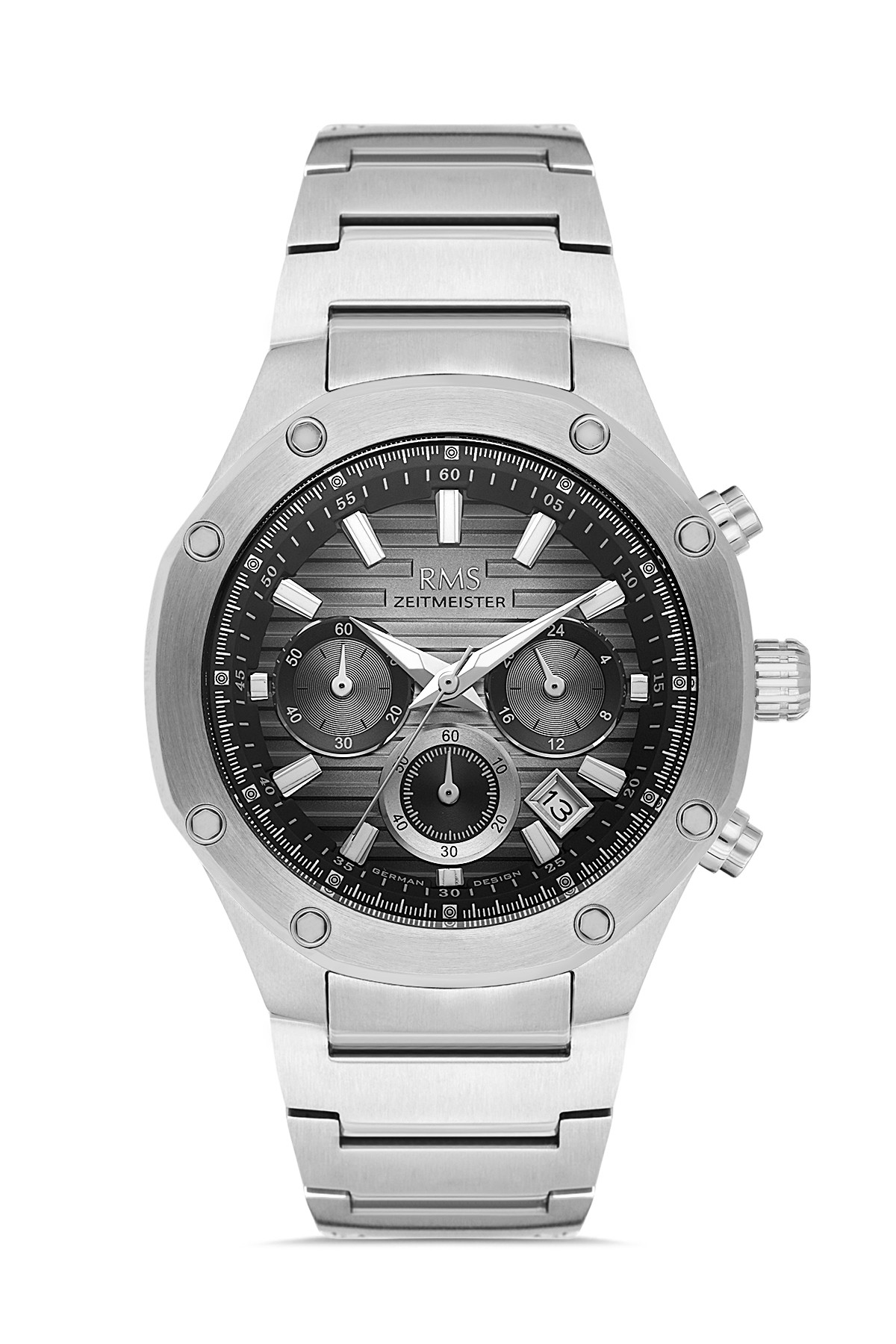 Erkek - Kronometre - Gümüş - Gri̇ - Paslanmaz Masi̇f Çeli̇k - 5 Atm - Sertleşti̇ri̇lmi̇ş Mi̇neral Cam - Grand Romanson - 43