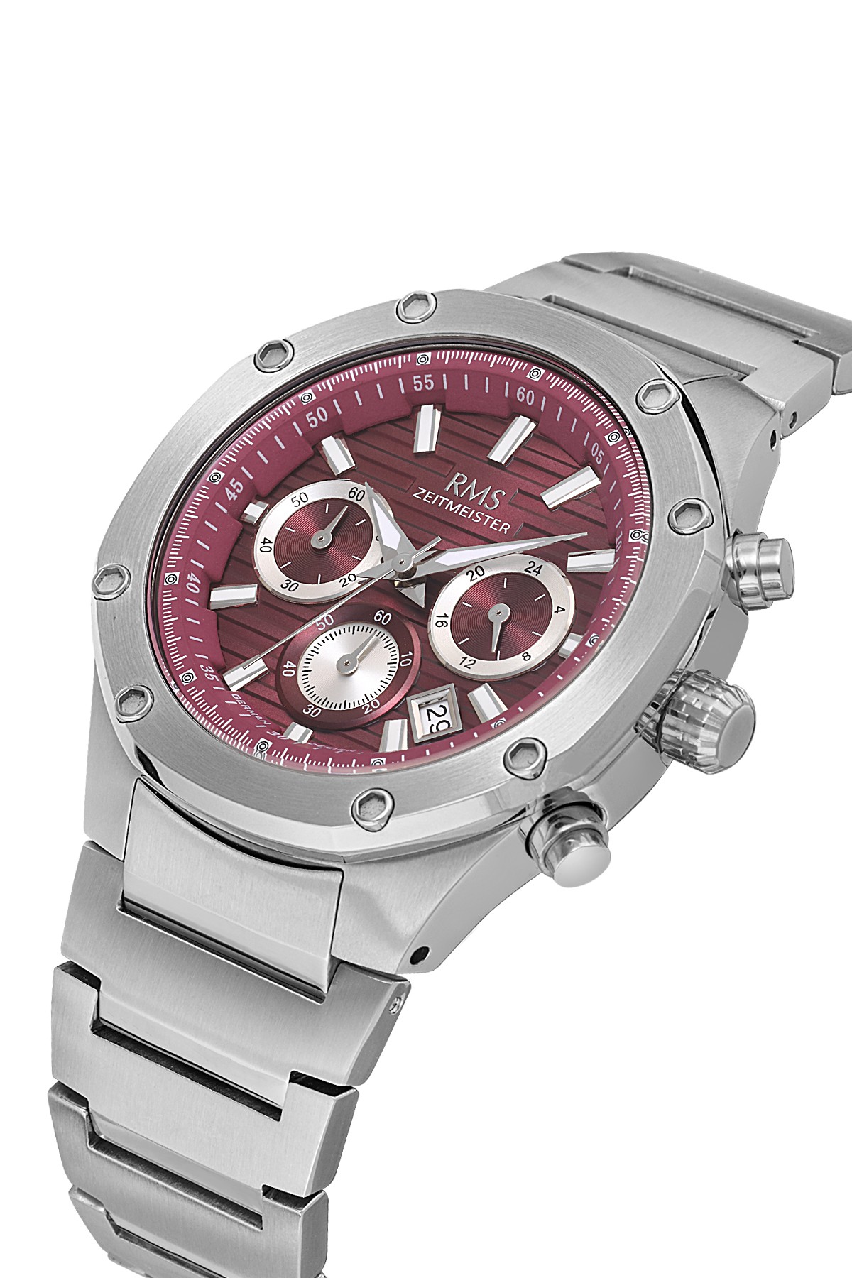 Erkek - Kronometre - Gümüş - Bordo - Paslanmaz Masi̇f Çeli̇k - 5 Atm - Sertleşti̇ri̇lmi̇ş Mi̇neral Cam - Grand Romanson - 43