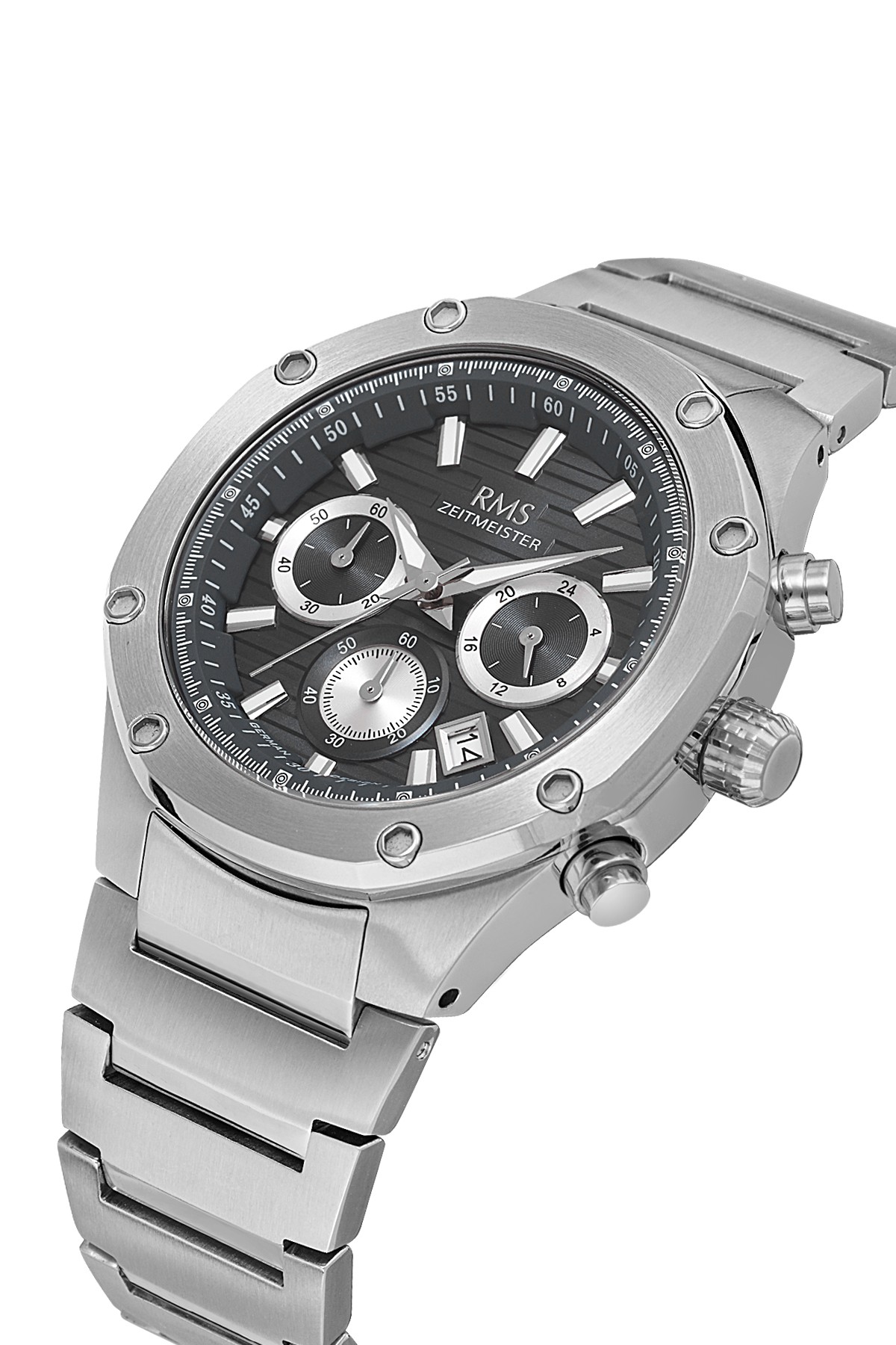 Erkek - Kronometre - Gümüş - Si̇yah - Paslanmaz Masi̇f Çeli̇k - 5 Atm - Sertleşti̇ri̇lmi̇ş Mi̇neral Cam - Grand Romanson - 43