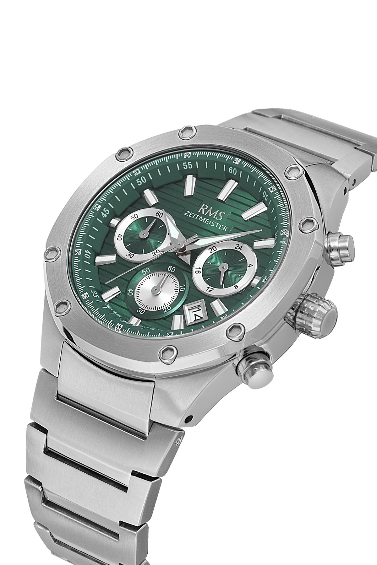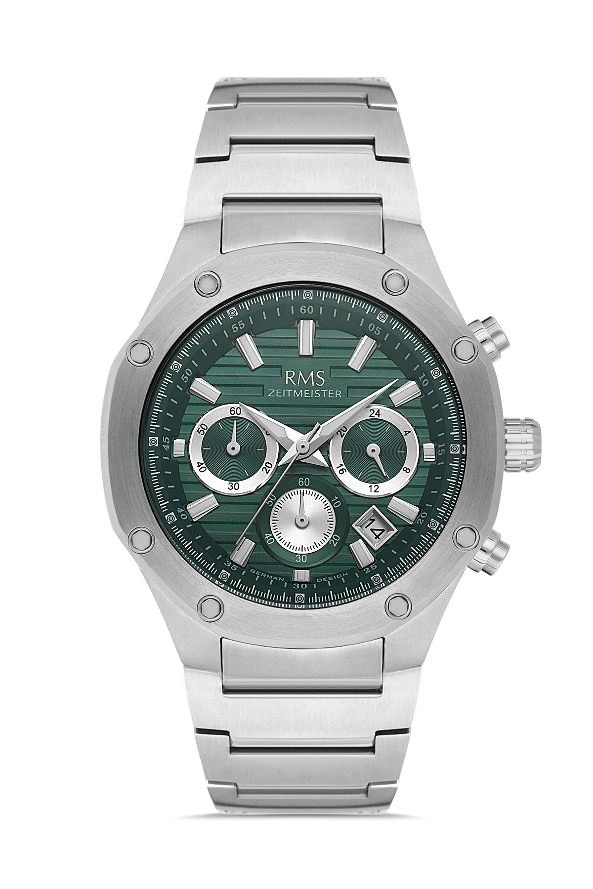 Erkek - Kronometre - Gümüş - Yeşi̇l - Paslanmaz Masi̇f Çeli̇k - 5 Atm - Sertleşti̇ri̇lmi̇ş Mi̇neral Cam - Grand Romanson - 43