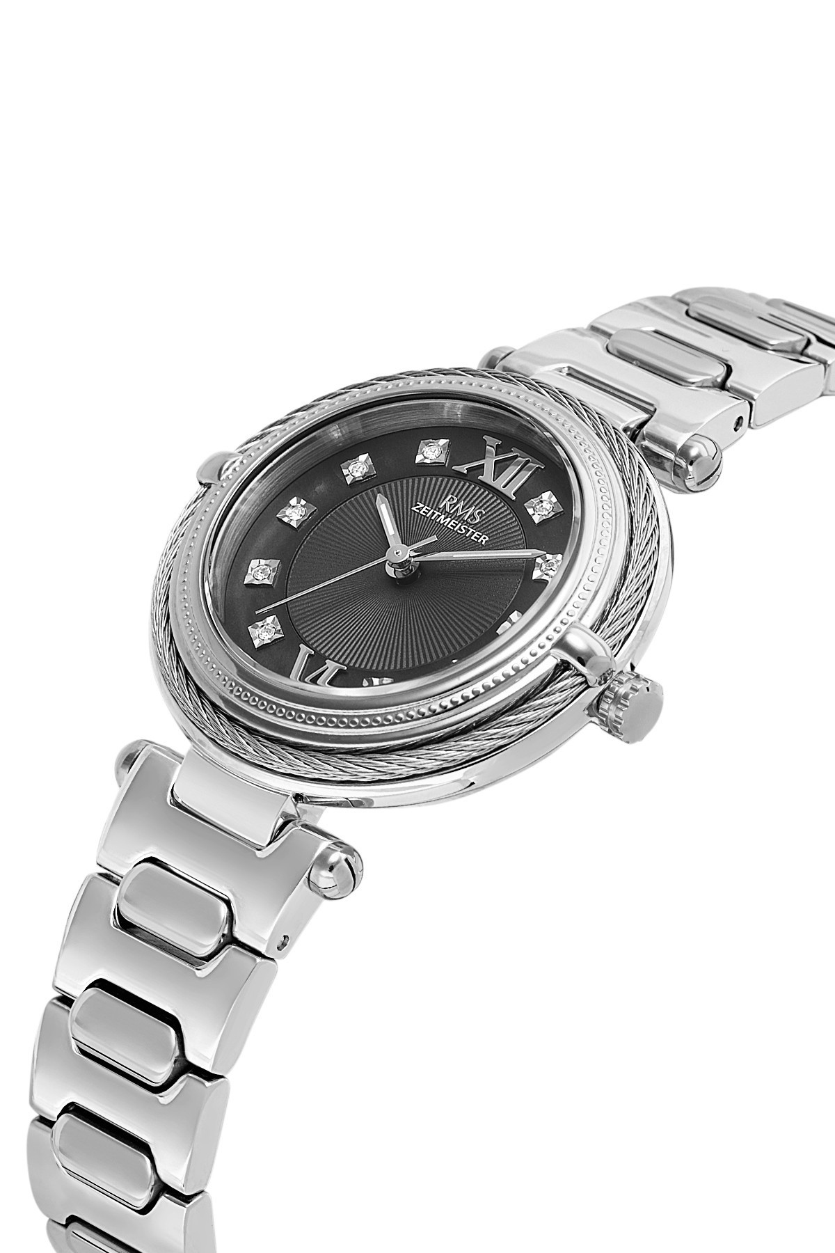 Kadın - Düz - Gümüş - Si̇yah - Paslanmaz Masi̇f Çeli̇k - 5 Atm - Sertleşti̇ri̇lmi̇ş Mi̇neral Cam - Grand Romanson - 32