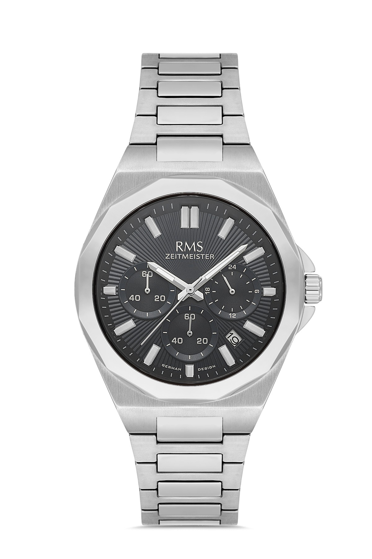 Erkek - Multi̇ Fonksi̇yon - Gümüş - Si̇yah - Paslanmaz Masi̇f Çeli̇k - 5 Atm - Sertleşti̇ri̇lmi̇ş Mi̇neral Cam - Grand Romanson - 44