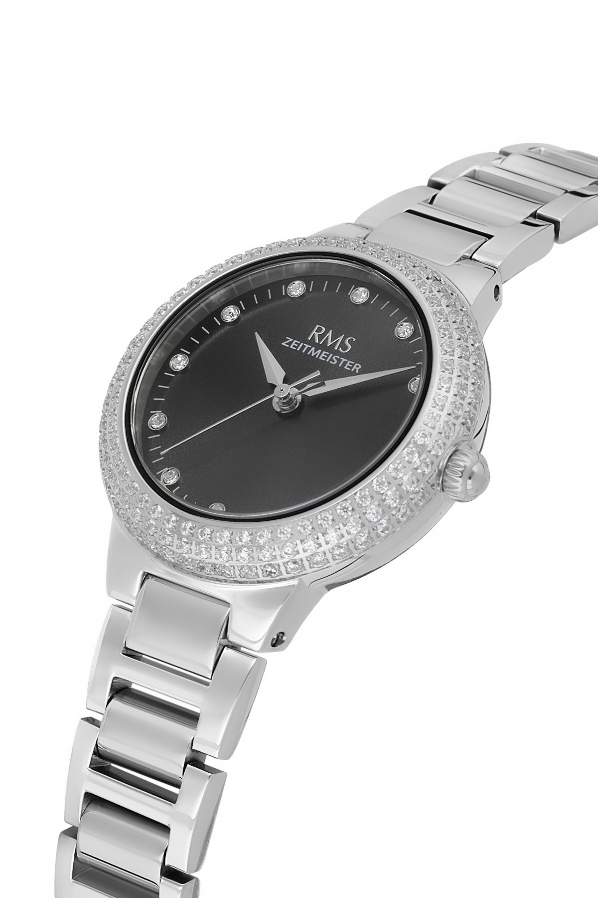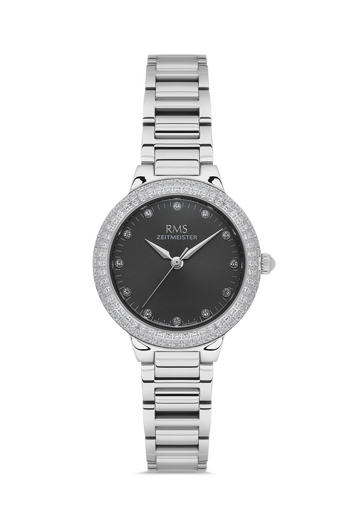Kadın - Taşli - Gümüş - Si̇yah - Paslanmaz Masi̇f Çeli̇k - 5 Atm - Sertleşti̇ri̇lmi̇ş Mi̇neral Cam - Grand Romanson - 30