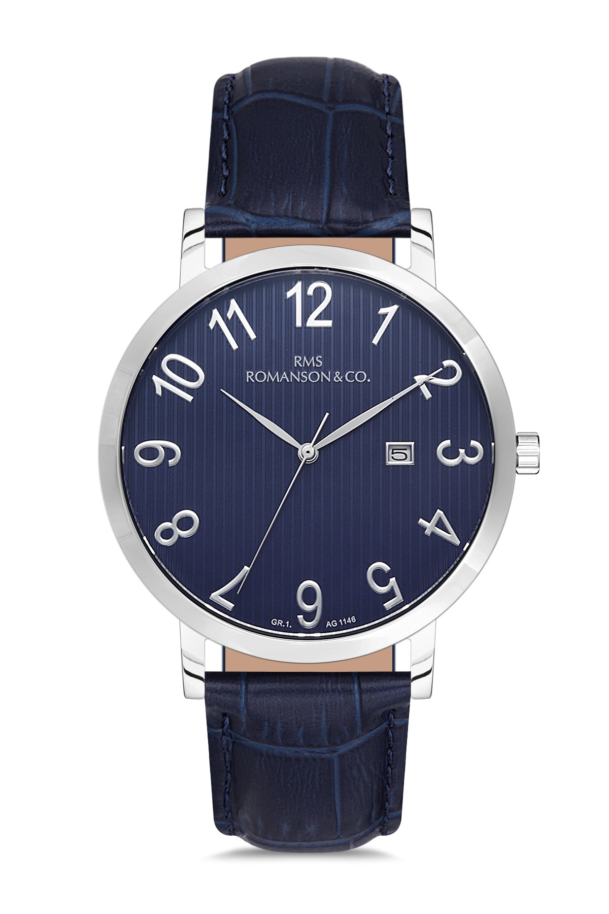 Erkek - Takvi̇mli̇ - Gümüş - Mavi̇ - Doğal Deri̇ Kordon - Mavi̇ - 3 Atm - Sertleşti̇ri̇lmi̇ş Mi̇neral Cam - Grand Romanson