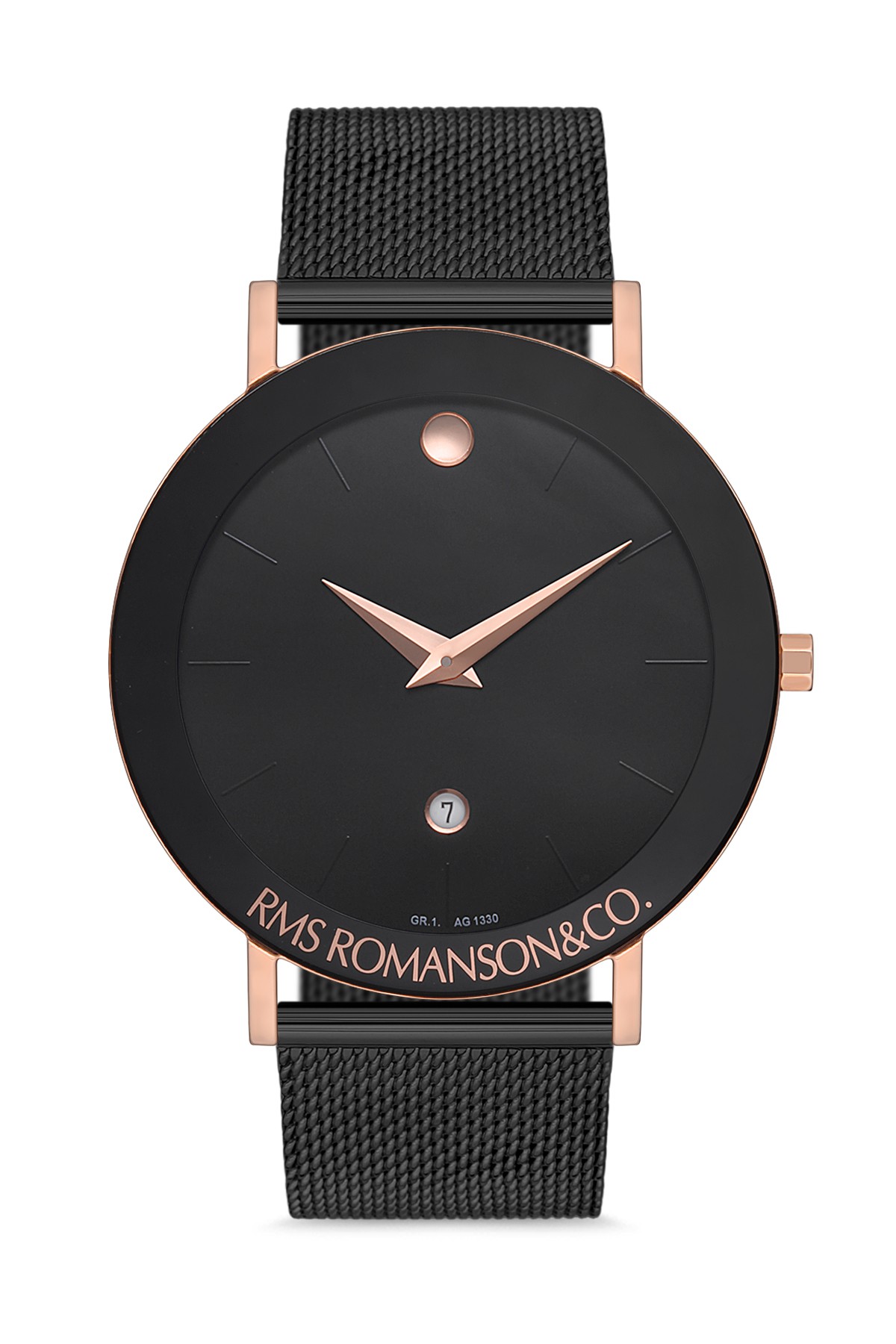 Erkek - Takvi̇mli̇ - Rose - Si̇yah - Çeli̇k Örme Kordon - 3 Atm - Sertleşti̇ri̇lmi̇ş Mi̇neral Cam - Grand Romanson