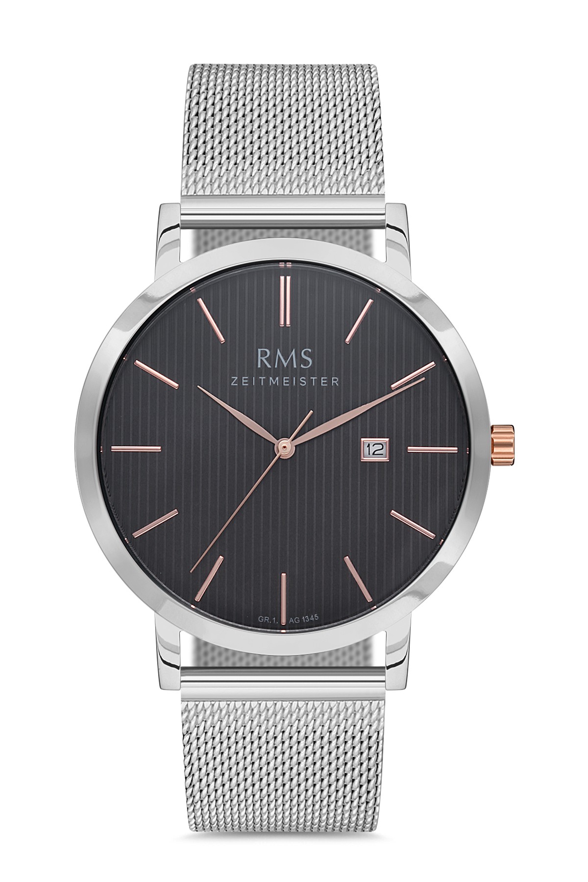 Erkek - Takvi̇mli̇ - Gümüş - Si̇yah - Çeli̇k Örme Kordon - 3 Atm - Sertleşti̇ri̇lmi̇ş Mi̇neral Cam - Grand Romanson