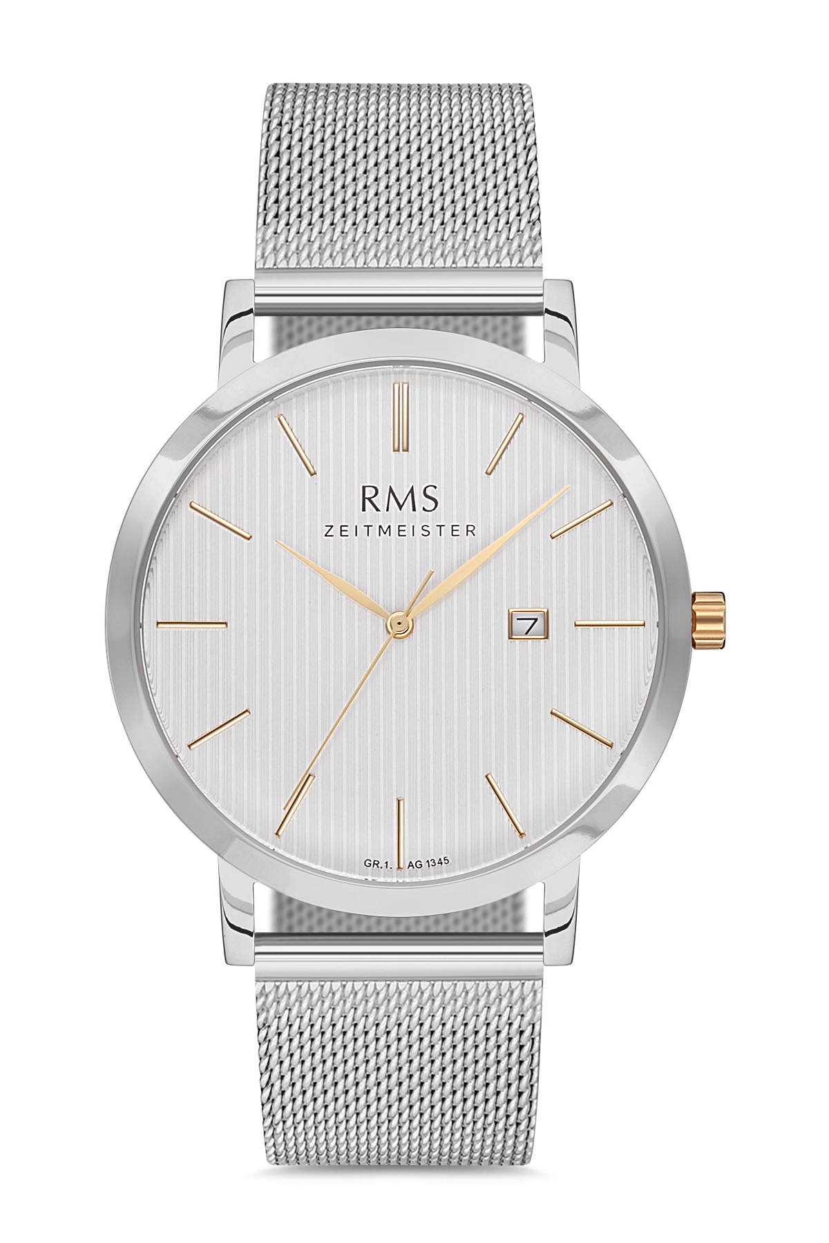 Erkek - Takvi̇mli̇ - Gümüş - Mavi̇ - Çeli̇k Örme Kordon - 3 Atm - Sertleşti̇ri̇lmi̇ş Mi̇neral Cam - Grand Romanson