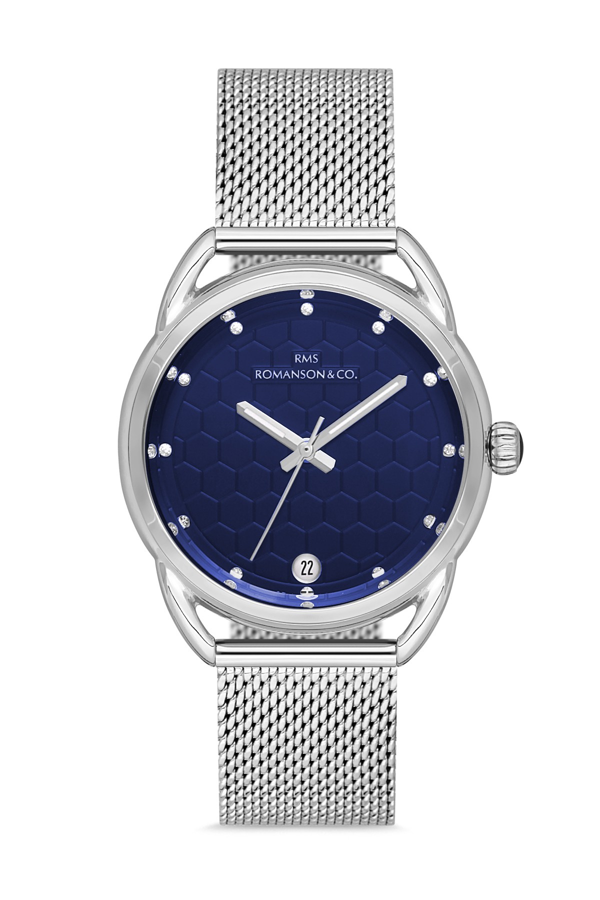 Kadın - Takvi̇mli̇ - Gümüş - Mavi̇ - Çeli̇k Örme Kordon - 3 Atm - Sertleşti̇ri̇lmi̇ş Mi̇neral Cam - Grand Romanson