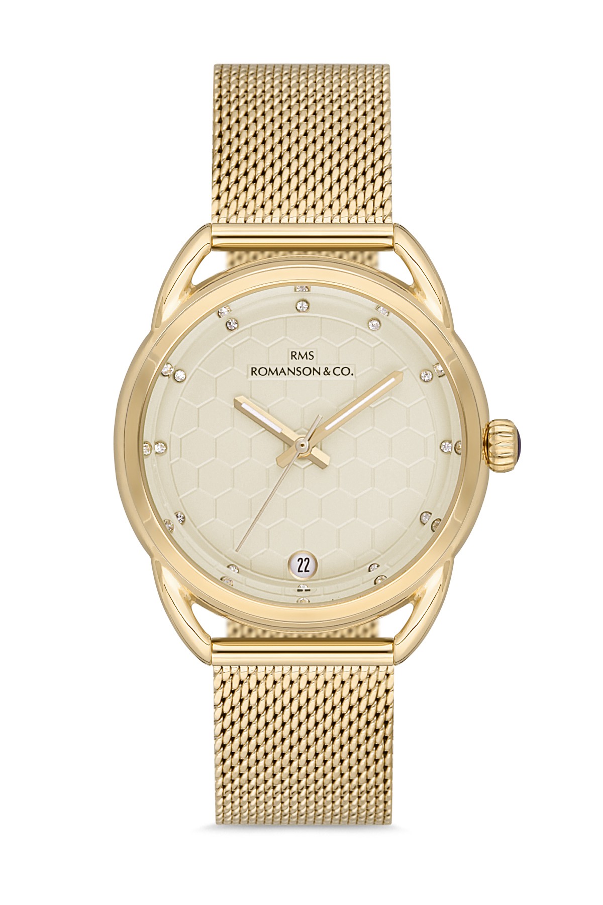 Kadın - Takvi̇mli̇ - Sari - Sari - Çeli̇k Örme Kordon - 3 Atm - Sertleşti̇ri̇lmi̇ş Mi̇neral Cam - Grand Romanson