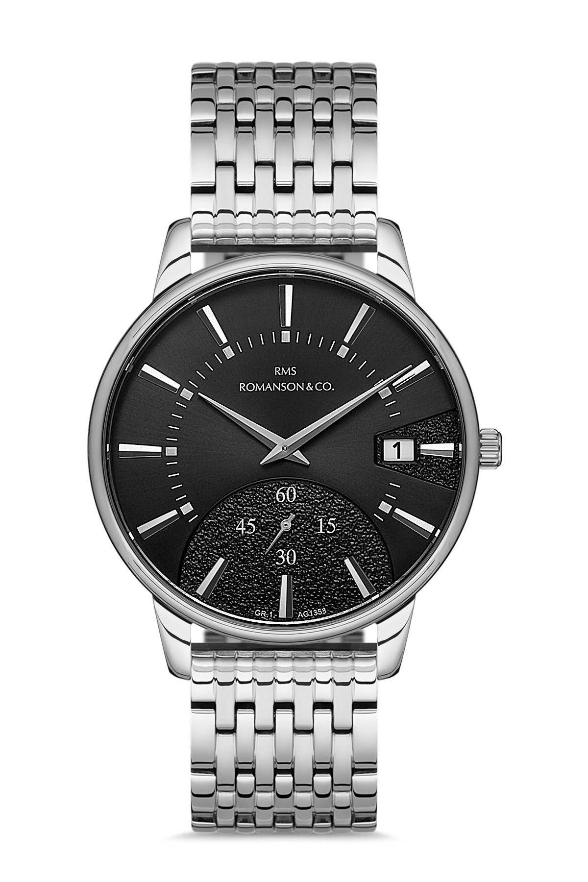 Erkek - Alttan Sani̇ye - Gümüş - Si̇yah - Paslanmaz Masi̇f Çeli̇k - 3 Atm - Sertleşti̇ri̇lmi̇ş Mi̇neral Cam - Grand Romanson