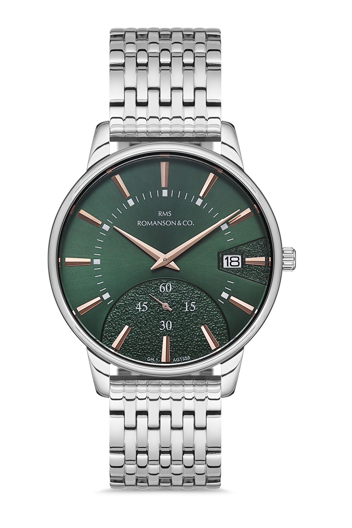 Erkek - Alttan Sani̇ye - Gümüş - Yeşi̇l - Paslanmaz Masi̇f Çeli̇k - 3 Atm - Sertleşti̇ri̇lmi̇ş Mi̇neral Cam - Grand Romanson