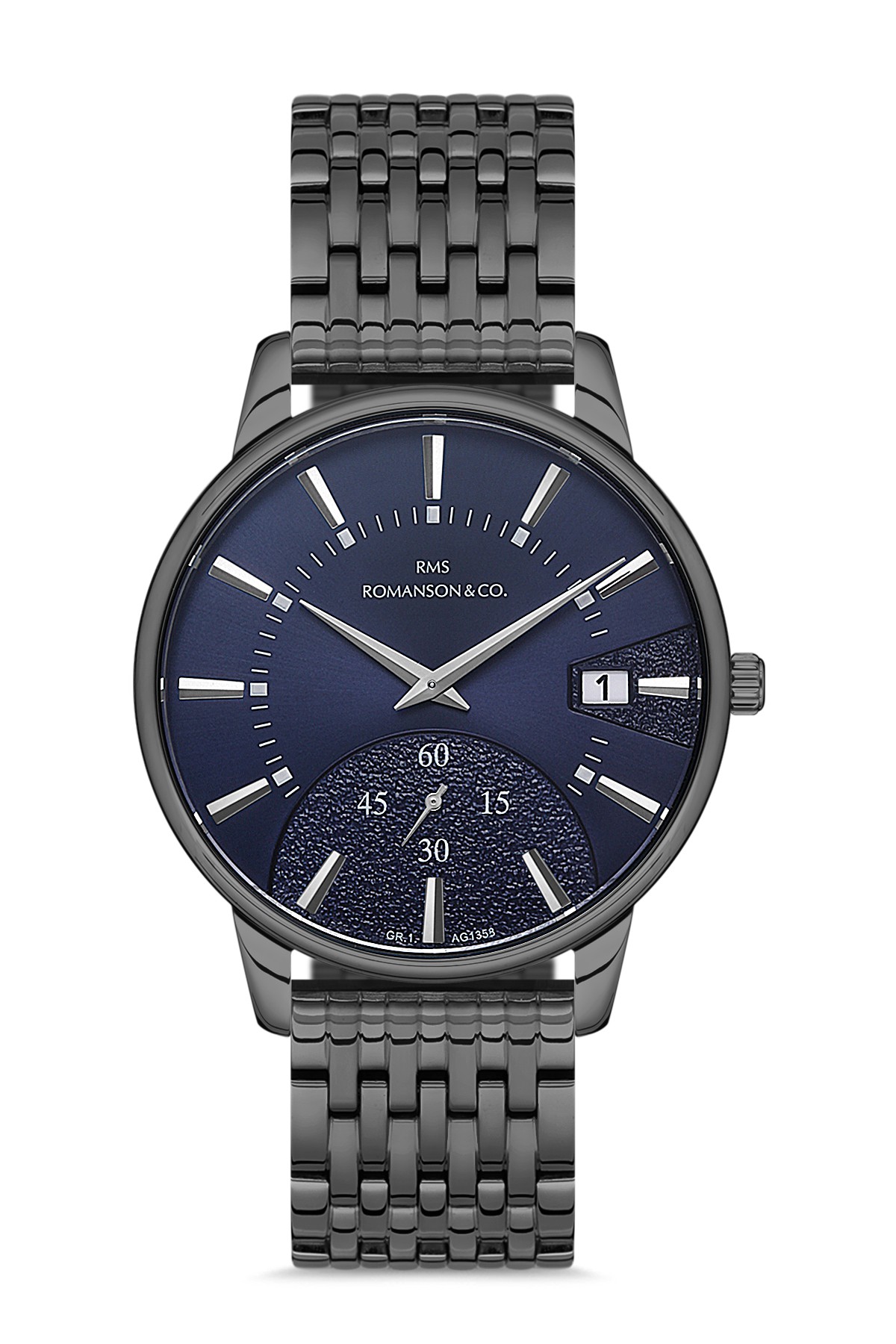 Erkek - Alttan Sani̇ye - Gun - Mavi̇ - Paslanmaz Masi̇f Çeli̇k - 3 Atm - Sertleşti̇ri̇lmi̇ş Mi̇neral Cam - Grand Romanson