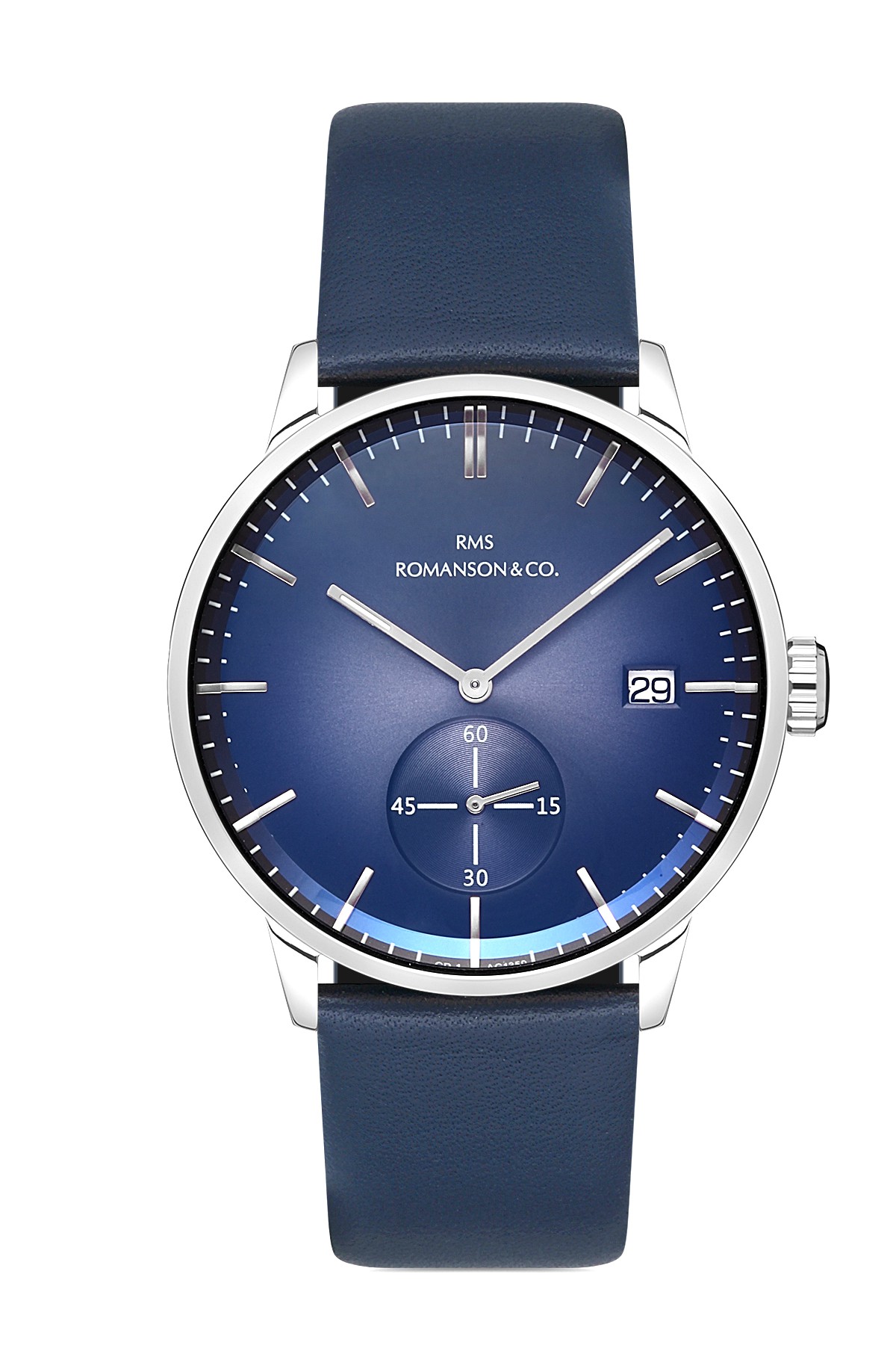 Erkek - Alttan Sani̇ye - Gümüş - Mavi̇ - Doğal Deri̇ Kordon - Mavi̇ - 3 Atm - Sertleşti̇ri̇lmi̇ş Mi̇neral Cam - Grand Romanson