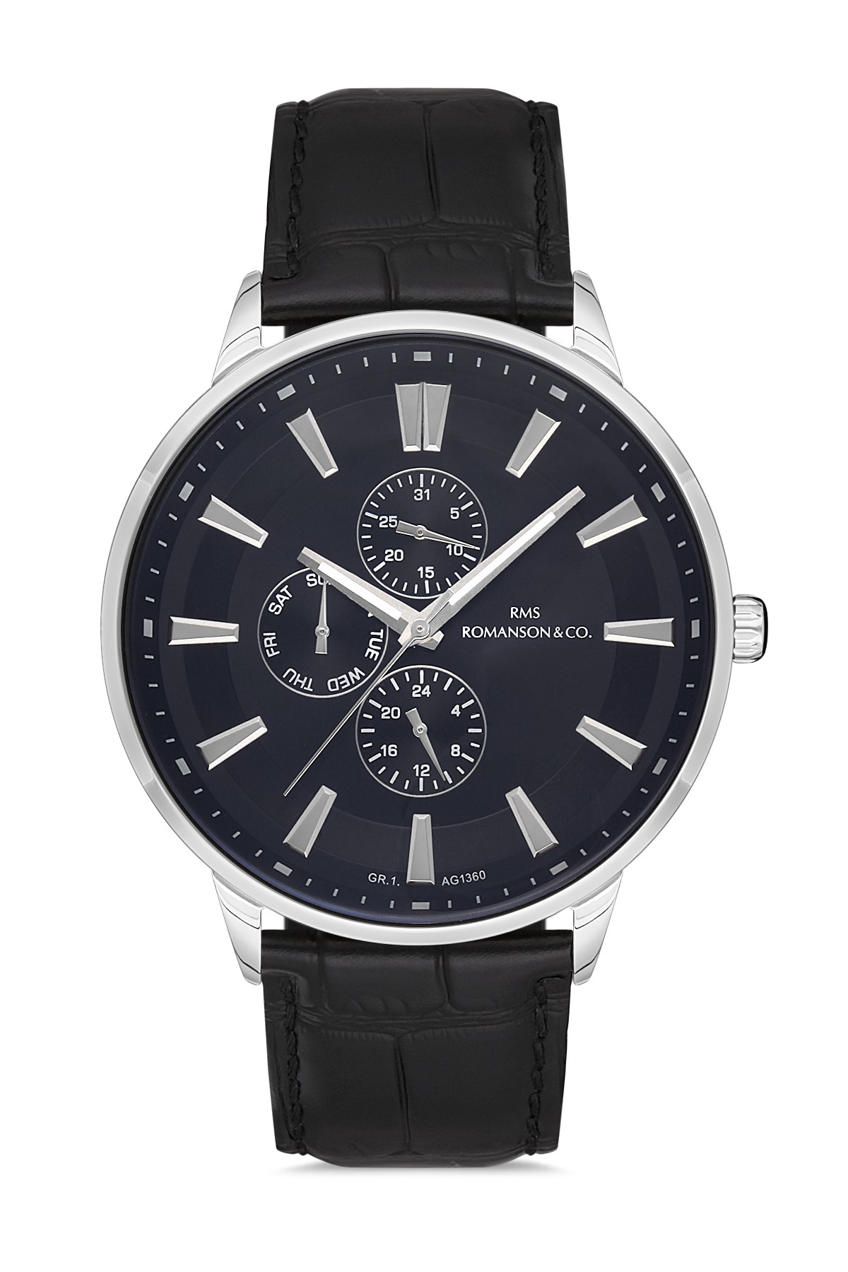 Erkek - Multi̇ Fonksi̇yon - Gümüş - Si̇yah - Doğal Deri̇ Kordon - Si̇yah - 3 Atm - Sertleşti̇ri̇lmi̇ş Mi̇neral Cam - Grand Romanson