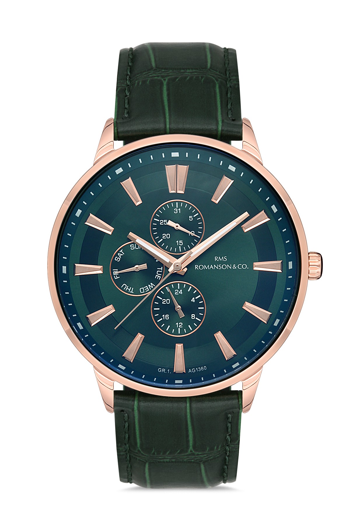 Erkek - Multi̇ Fonksi̇yon - Rose - Yeşi̇l - Doğal Deri̇ Kordon - Yeşi̇l - 3 Atm - Sertleşti̇ri̇lmi̇ş Mi̇neral Cam - Grand Romanson