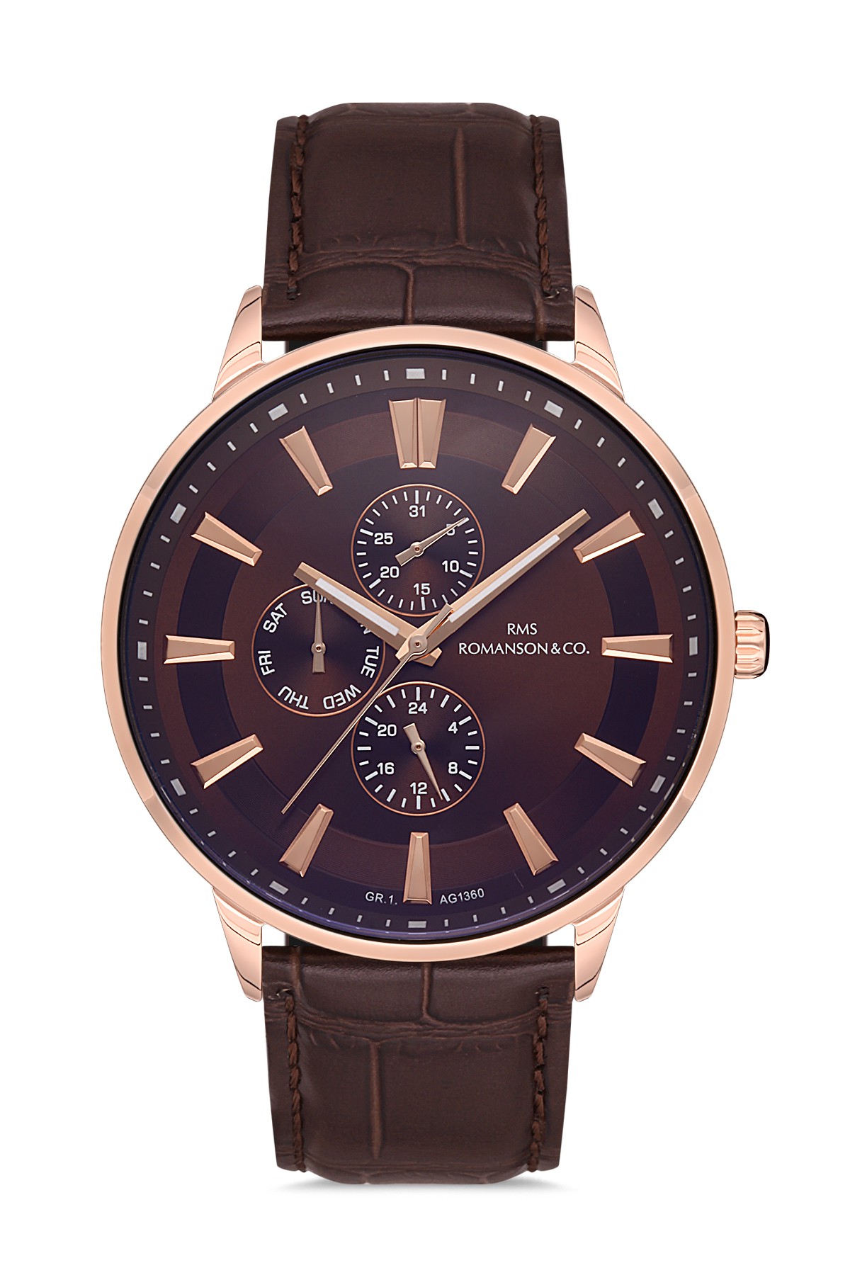 Erkek - Multi̇ Fonksi̇yon - Rose Kahverengi̇ - Kahverengi̇ - Doğal Deri̇ Kordon - Kahverengi̇ - 3 Atm - Sertleşti̇ri̇lmi̇ş Mi̇neral Cam - Grand Romanson
