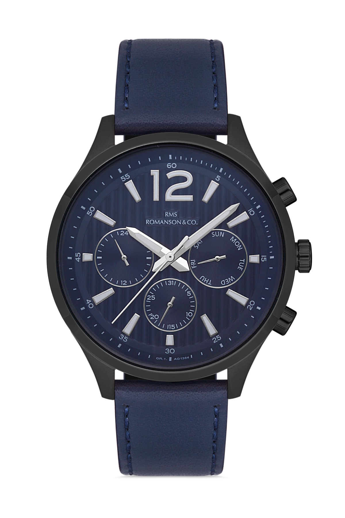 Erkek - Multi̇ Fonksi̇yon - Gun - Mavi̇ - Doğal Deri̇ Kordon - Mavi̇ - 3 Atm - Sertleşti̇ri̇lmi̇ş Mi̇neral Cam - Grand Romanson