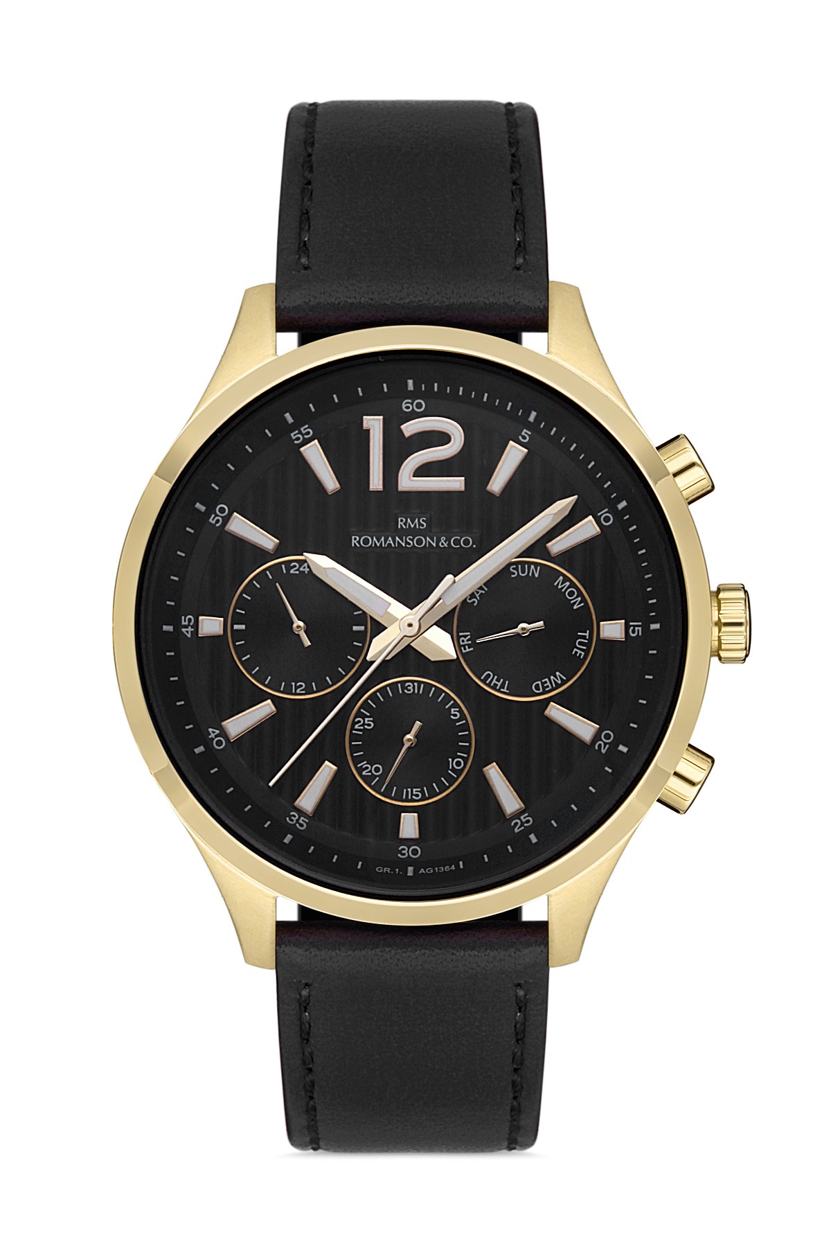 Erkek - Multi̇ Fonksi̇yon - Sari - Si̇yah - Doğal Deri̇ Kordon - Si̇yah - 3 Atm - Sertleşti̇ri̇lmi̇ş Mi̇neral Cam - Grand Romanson