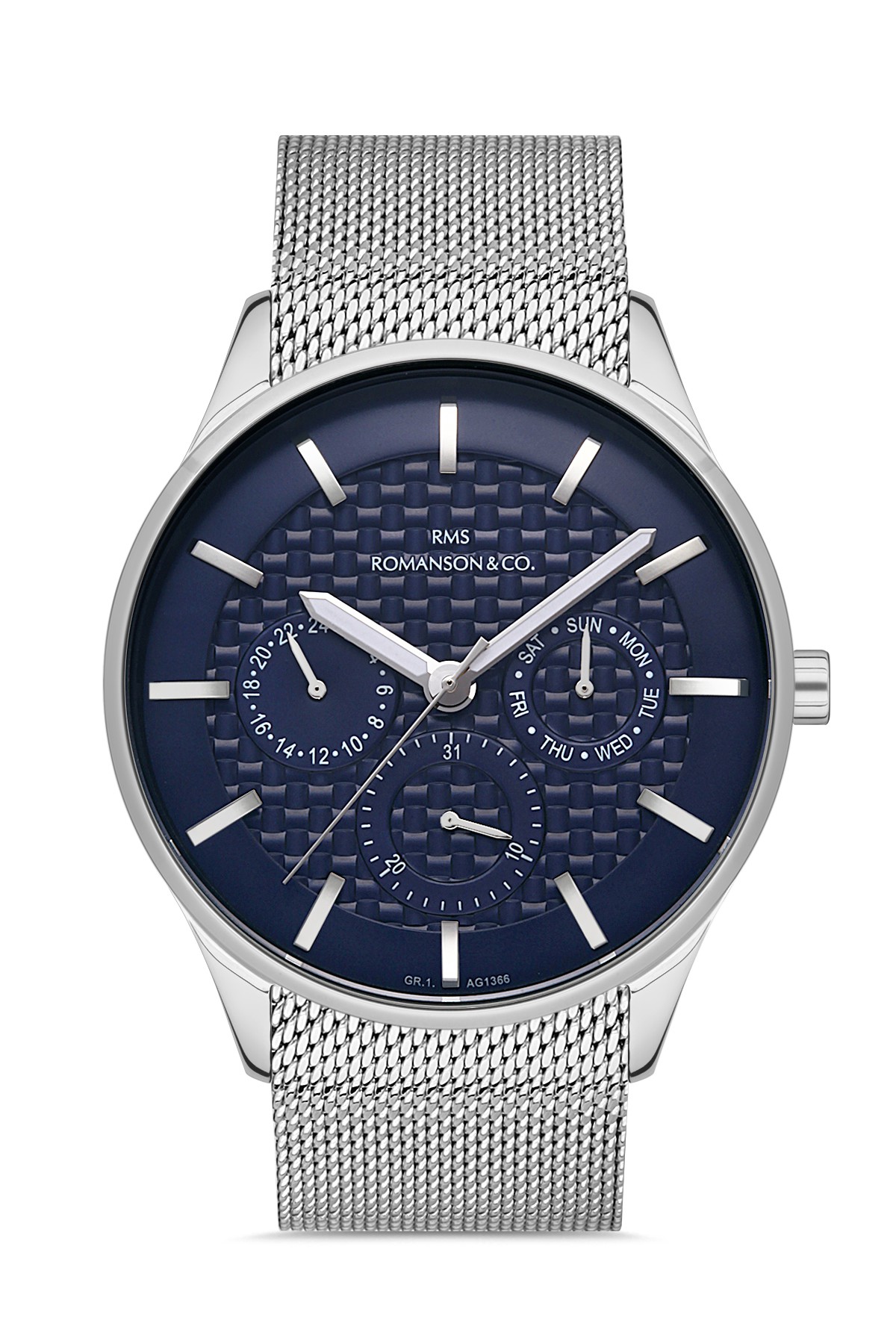 Erkek - Multi̇ Fonksi̇yon - Gümüş - Mavi̇ - Çeli̇k Örme Kordon - 3 Atm - Sertleşti̇ri̇lmi̇ş Mi̇neral Cam - Grand Romanson
