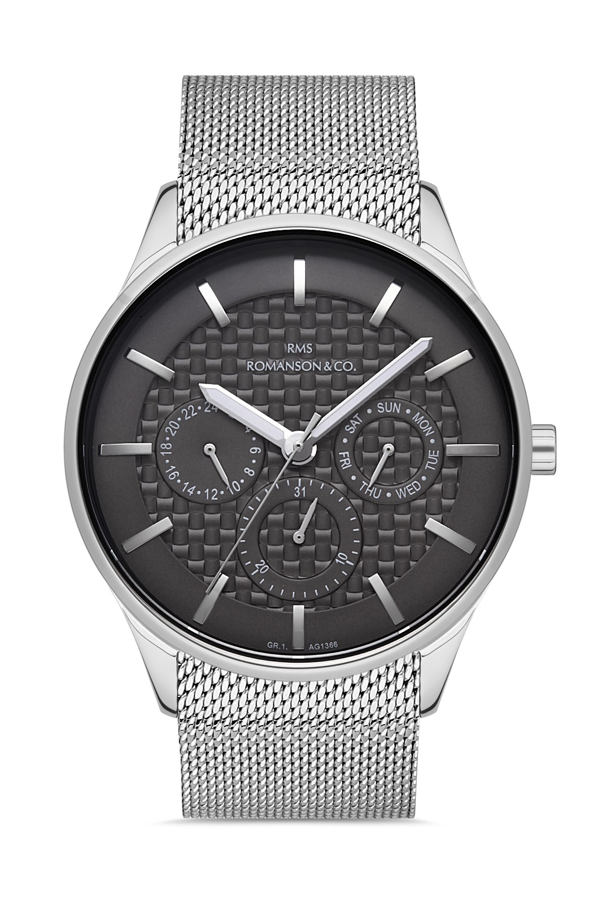 Erkek - Multi̇ Fonksi̇yon - Gümüş - Gri̇ - Çeli̇k Örme Kordon - 3 Atm - Sertleşti̇ri̇lmi̇ş Mi̇neral Cam - Grand Romanson