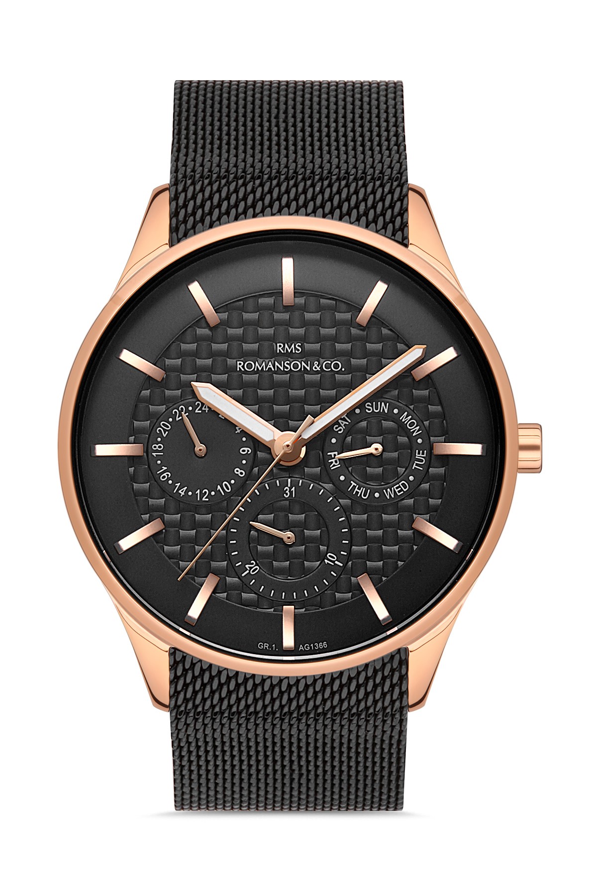 Erkek - Multi̇ Fonksi̇yon - Rose Si̇yah - Si̇yah - Çeli̇k Örme Kordon - 3 Atm - Sertleşti̇ri̇lmi̇ş Mi̇neral Cam - Grand Romanson