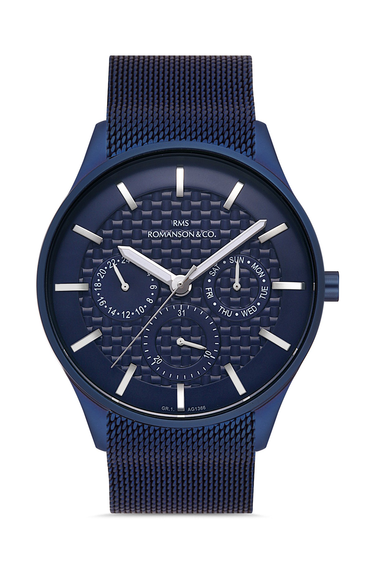 Erkek - Multi̇ Fonksi̇yon - Mavi̇ - Mavi̇ - Çeli̇k Örme Kordon - 3 Atm - Sertleşti̇ri̇lmi̇ş Mi̇neral Cam - Grand Romanson