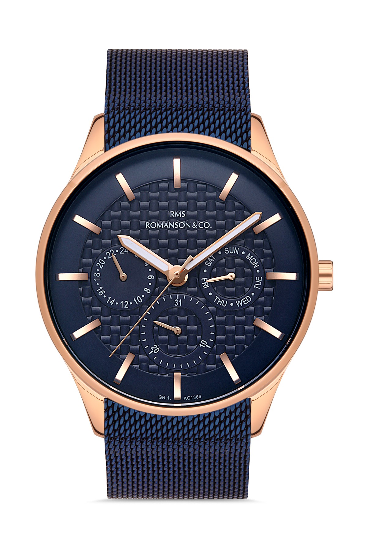 Erkek - Multi̇ Fonksi̇yon - Rose Mavi̇ - Mavi̇ - Çeli̇k Örme Kordon - 3 Atm - Sertleşti̇ri̇lmi̇ş Mi̇neral Cam - Grand Romanson
