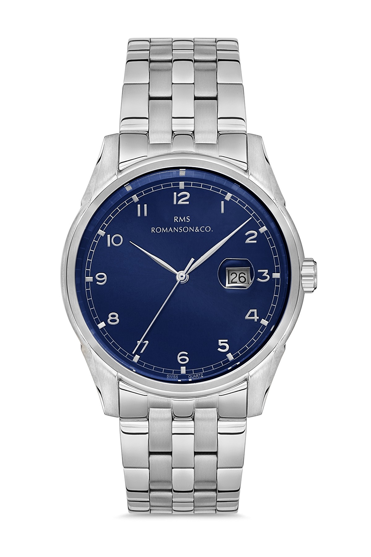 Erkek - Takvi̇mli̇ - Gümüş - Mavi̇ - Paslanmaz Masi̇f Çeli̇k - 3 Atm - Sertleşti̇ri̇lmi̇ş Mi̇neral Cam - Grand Romanson