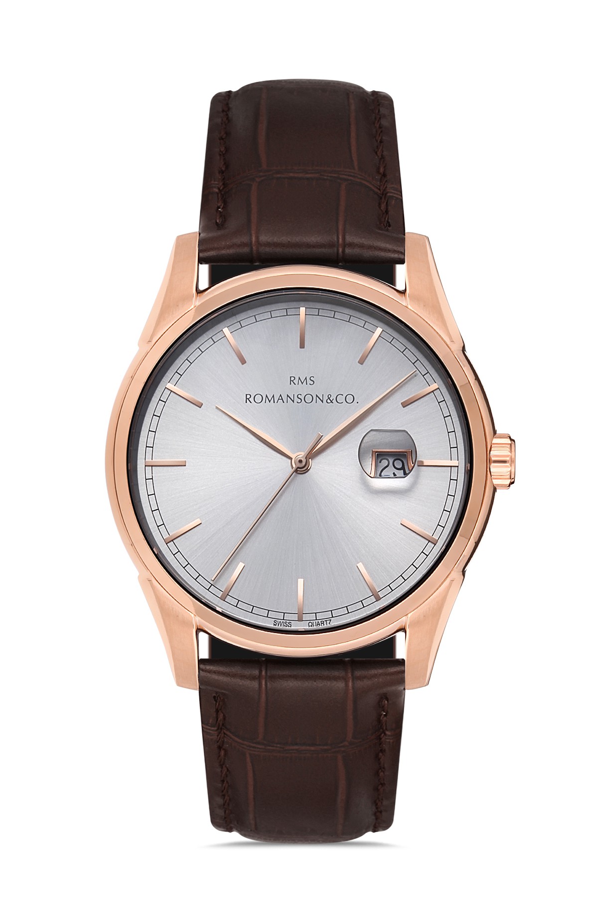 Erkek - Düz - Rose - Gümüş - Doğal Deri̇ Kordon - Kahverengi̇ - 3 Atm - Sertleşti̇ri̇lmi̇ş Mi̇neral Cam - Grand Romanson