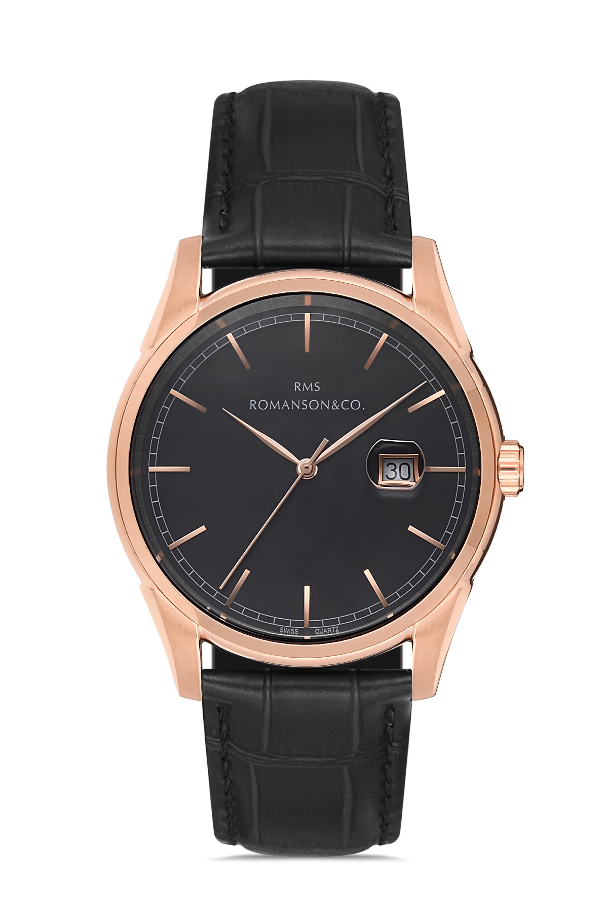 Erkek - Düz - Rose - Mavi̇ - Doğal Deri̇ Kordon - Mavi̇ - 3 Atm - Sertleşti̇ri̇lmi̇ş Mi̇neral Cam - Grand Romanson