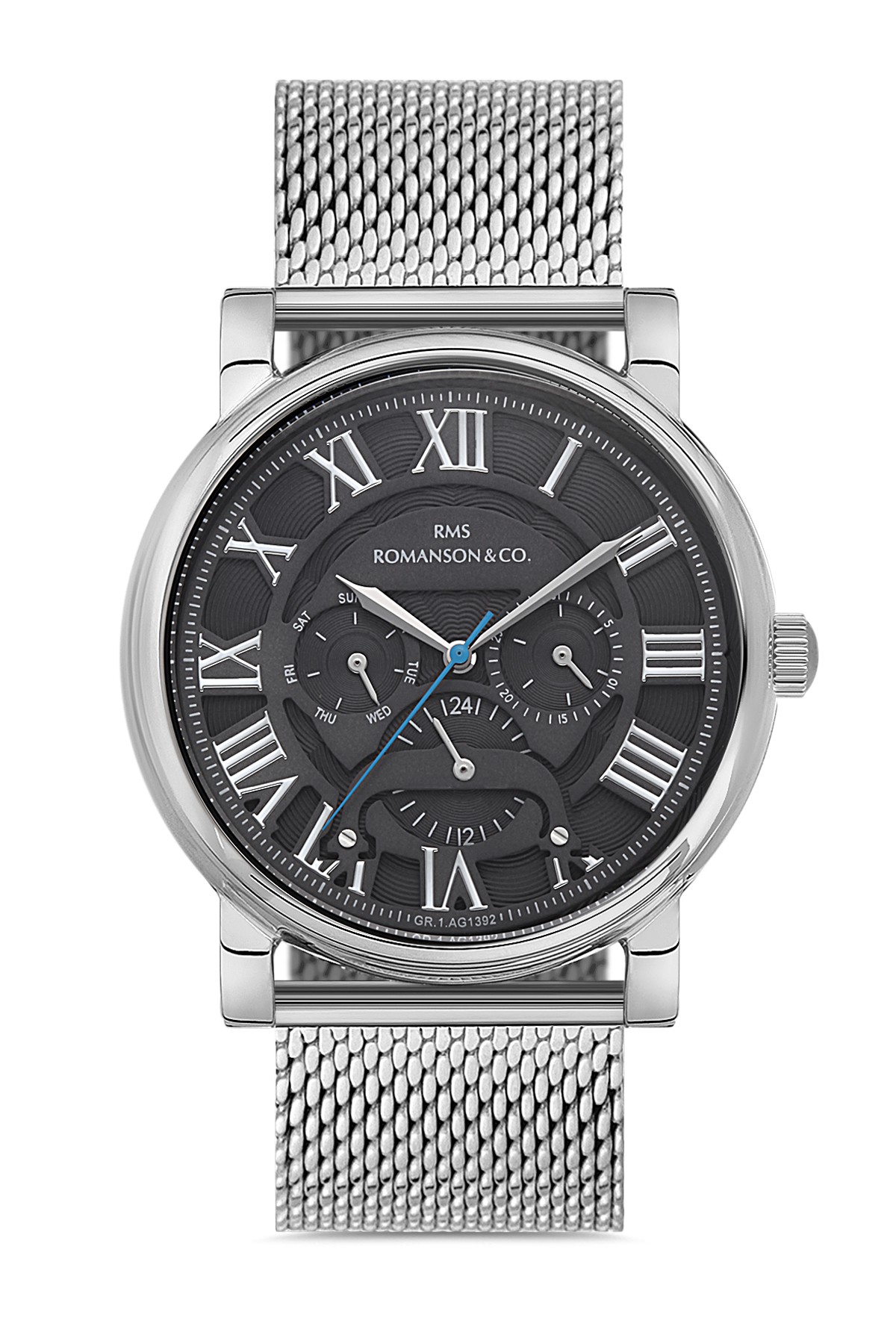 Erkek - Multi̇ Fonksi̇yon - Gümüş - Gri̇ - Çeli̇k Örme Kordon - 3 Atm - Sertleşti̇ri̇lmi̇ş Mi̇neral Cam - Grand Romanson